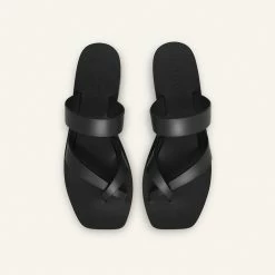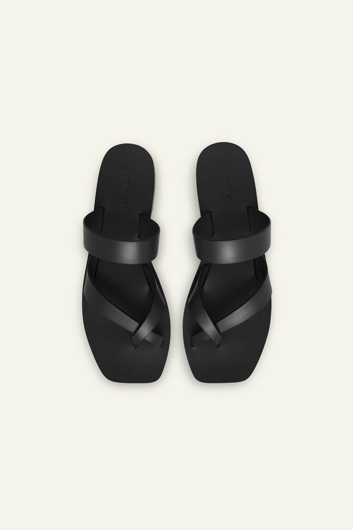 The Carter sandal by A.Emery is a minimal yet classic take on the everyday summer sandal. With a 90’s inspired criss-cross toe hold and a single mid-step strap that sits atop a classic slim square-toe leather footbed, this subtle sandal is perfectly paired with loose-fit denim or a wide-leg silk pant. The Carter is crafted from full-grain leather with leather upper, insole and outsole.Â