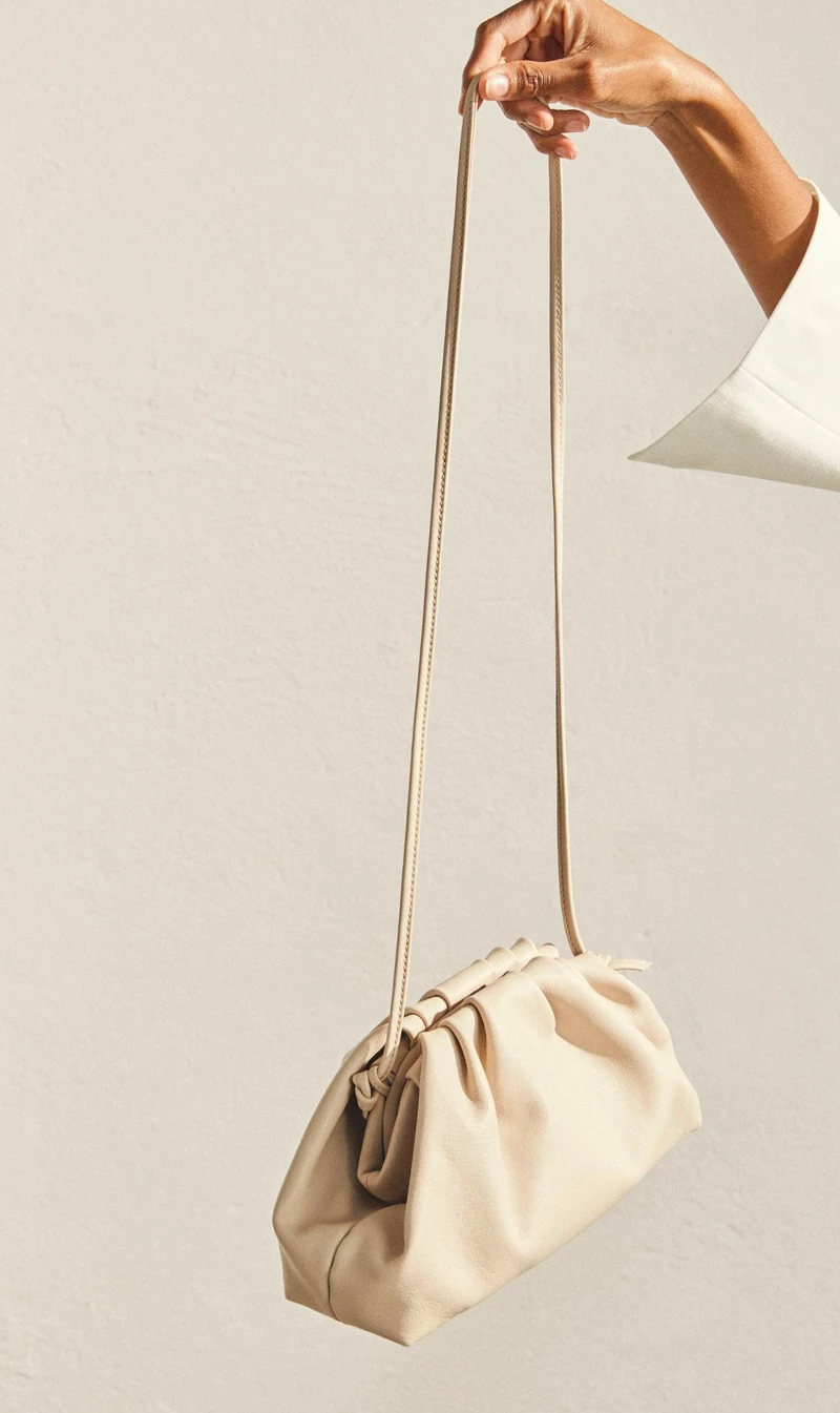 A minimalist’s dream, the D bag by Alohas is crafted from butter-soft leather in a timeless pillow-style pouch. Its slouchy silhouette features delicate foldings to create a voluminous cloudlike shape. Carry yours in-hand or slung it over the shoulder thanks to its removable leather strap.