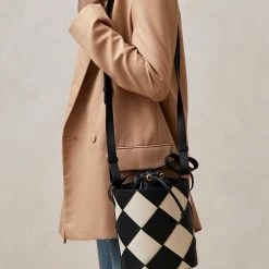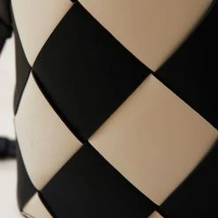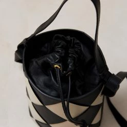 A strong and modern interpretation of the ever-so-popular bucket bag, the U Venti Scacchi by Alohas is the structured, geometric-inspired bag you’ll want to carry everywhere. Crafted from black and white leather to a compact cylindrical shape, it features both a top handle and a detachable crossbody strap. The fun checkered pattern and embossed ALOHAS logo complement the style. Use the inner drawstring pouch to store your smallest essentials.