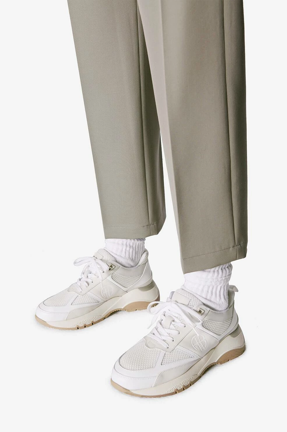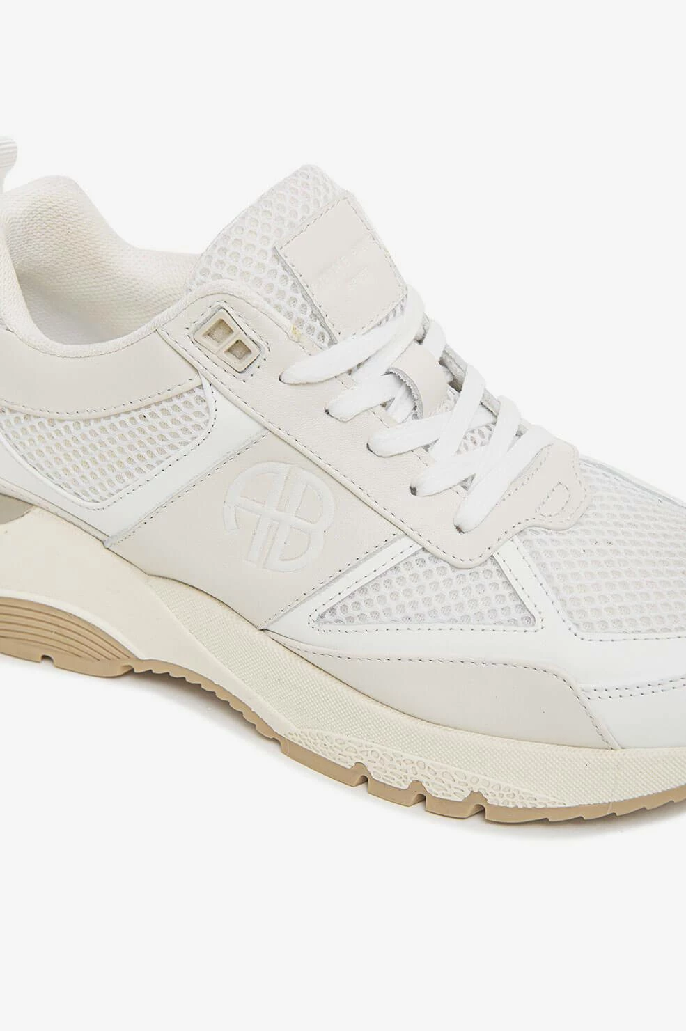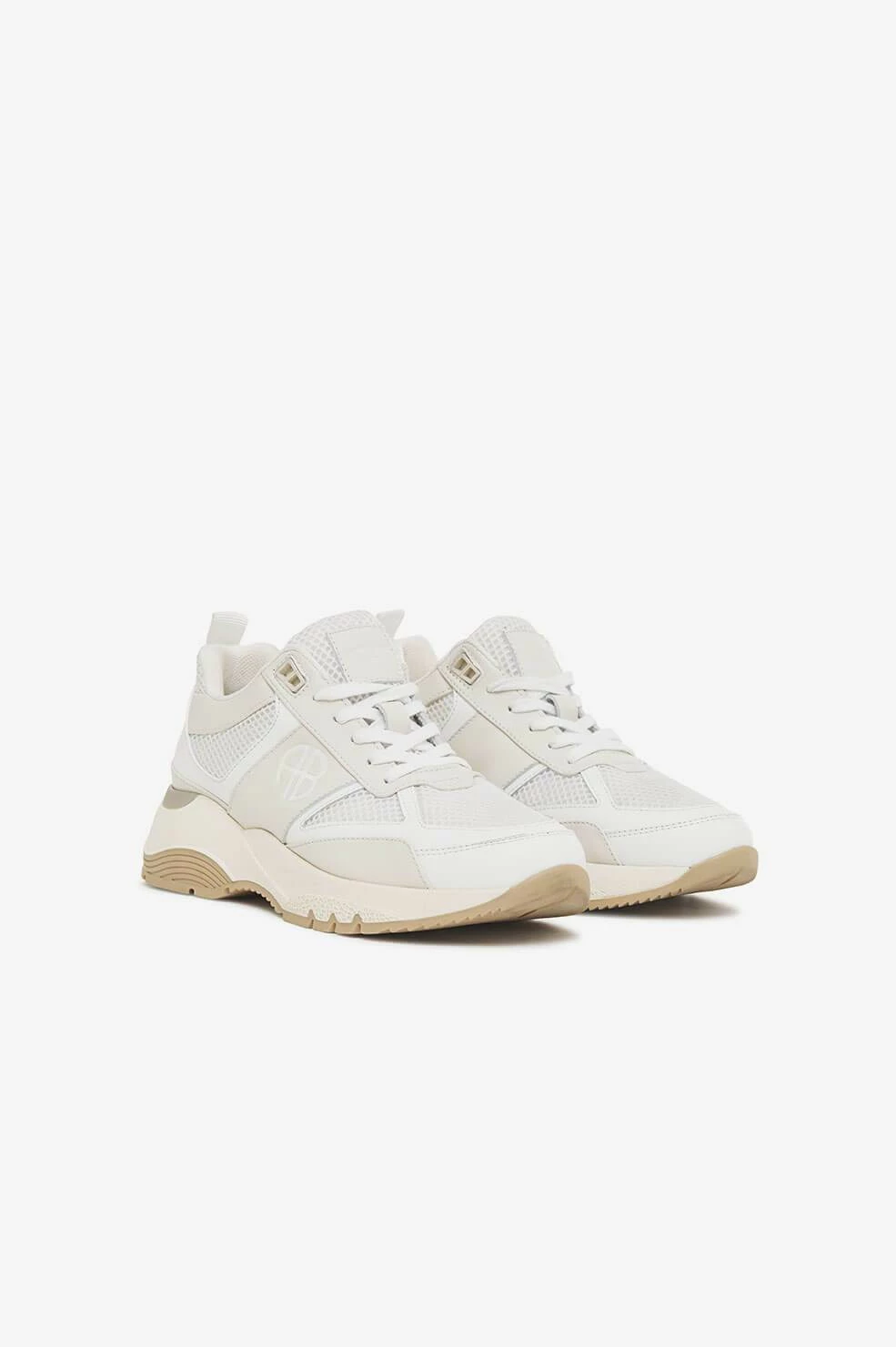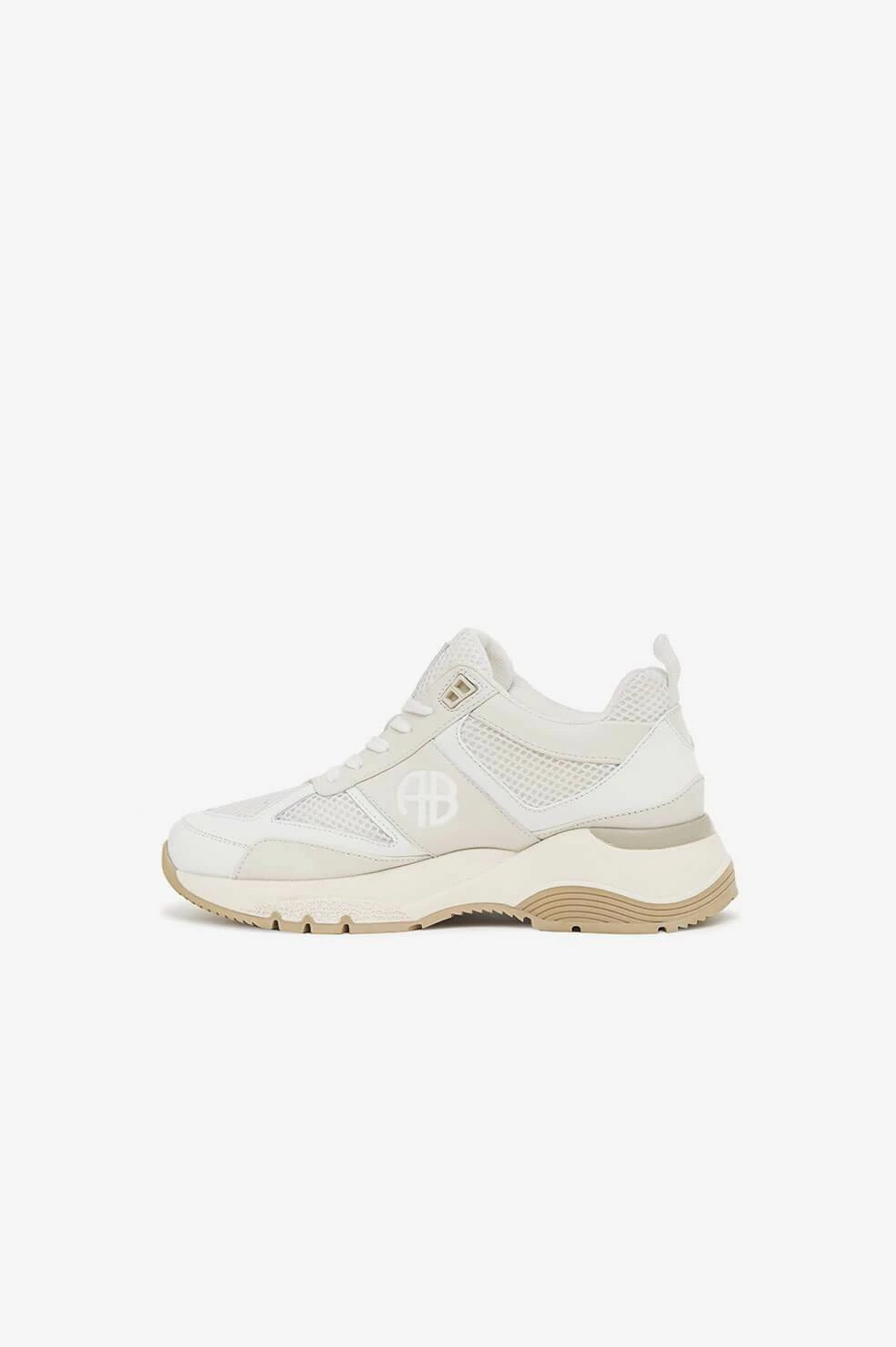 The Dina Sneakers from Anine Bing are crafted in 100% leather and mesh in subdued shades of light grey, white, and beige. Complete with a thick sole, this pair provides its wearer with the perfect amount of height, elevating any off-duty look. The sneakers are branded with an understated AB monogram, rounding out its athletic ‘90s influence. Take your true size.