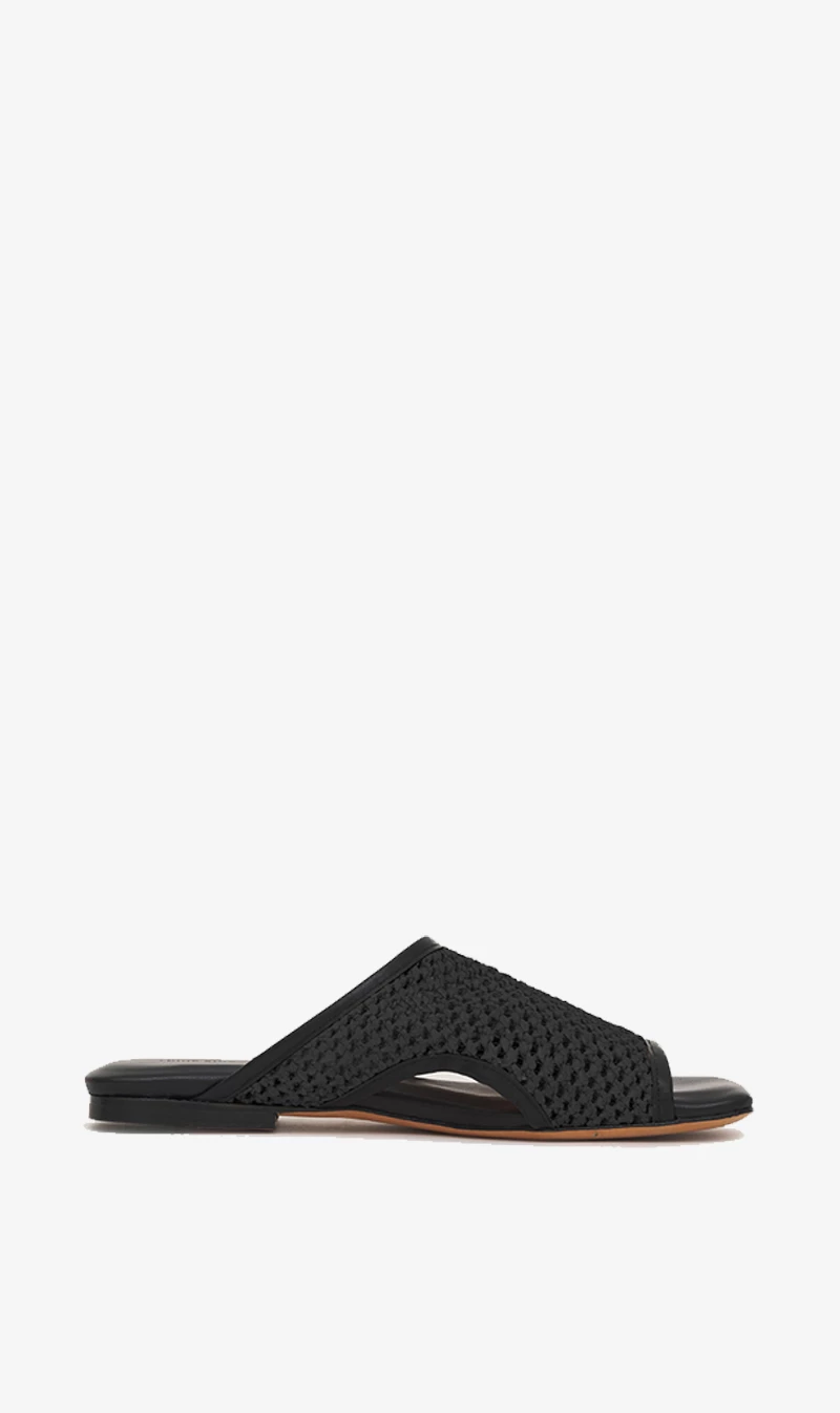 The Hoxton Slides by Anine Bing are made from a woven seagrass material elevated with smooth 100% leather trim. This seasonal pair features an open square toe, discrete cutouts at the inner and outer arch, and a cushioned insole. Accented with an ANINE BING monogram in gold-tone hardware. Pair with relaxed white pants and black tank for the ultimate in monochrome polish.Â