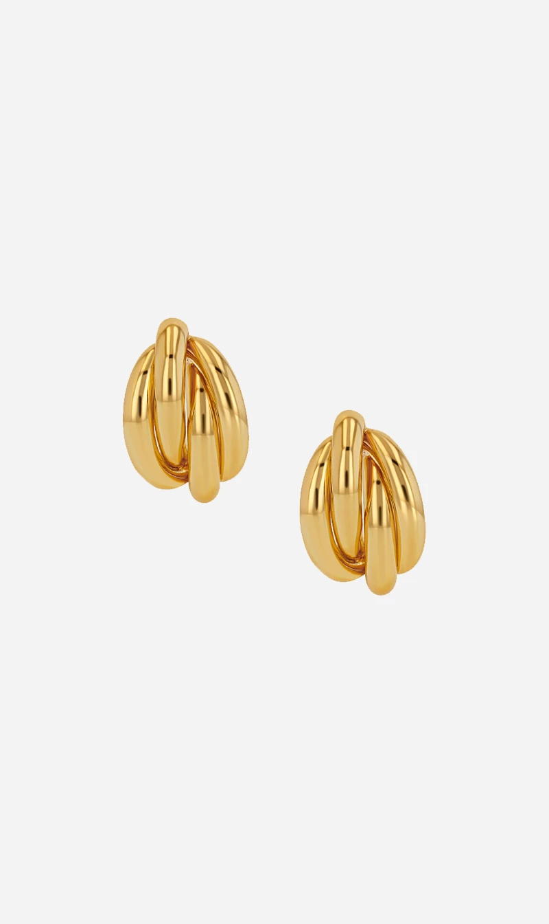 The timeless and elegant Knot Earrings by Anine Bing are a pair of open-hoop earrings crafted in 14k gold-plated brass featuring four knotted ropes. Complete with classic butterfly backs engraved with subtle ANINE BING branding, these beauties will provide a subtle lift to any outfit, day or night.Â