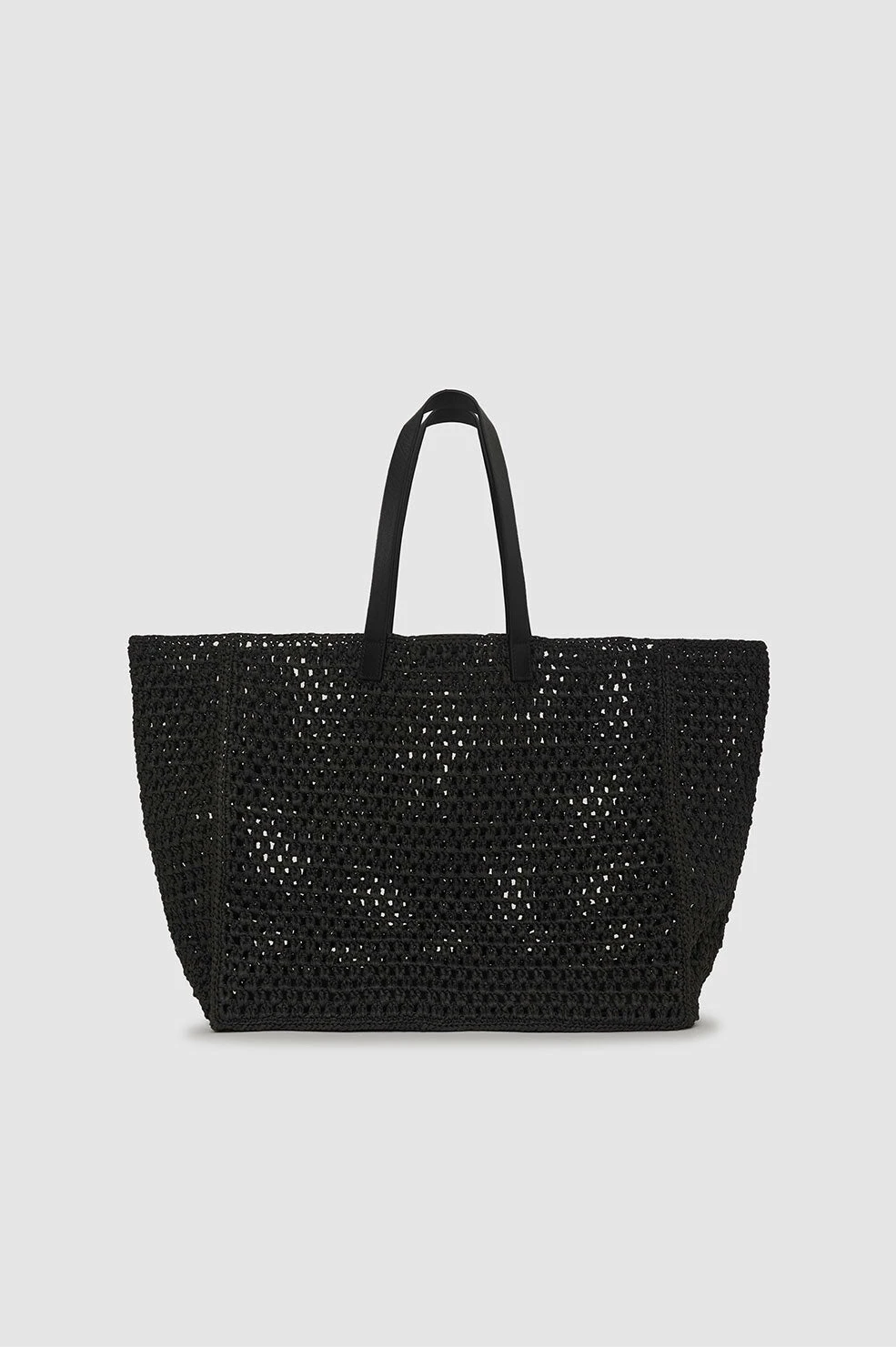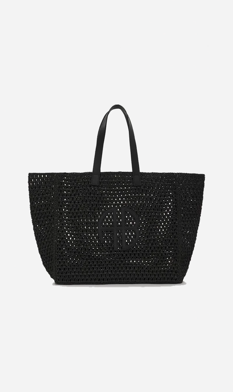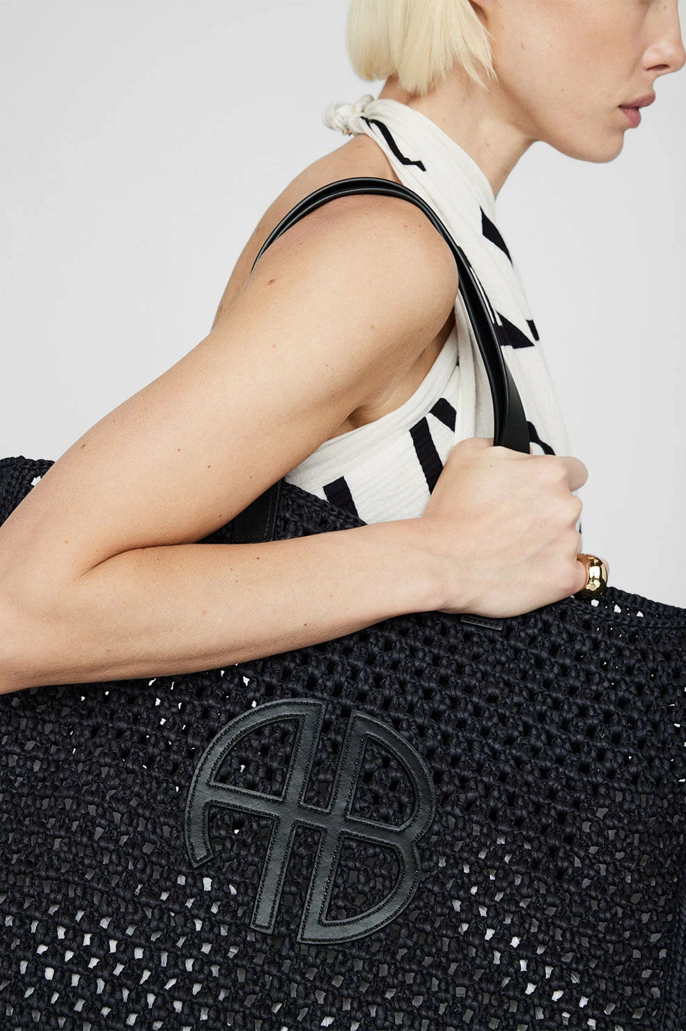 The Large Rio Tote is a vacation essential made from a woven seagrass material and is now in an updated black colour, this seasonal style features two tonal straps for easy transport and a coordinating Anine Bing monogram at the center front.