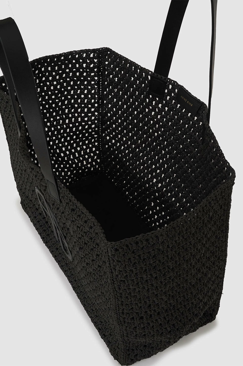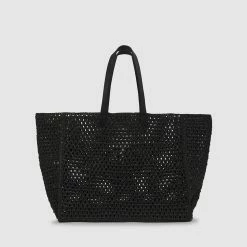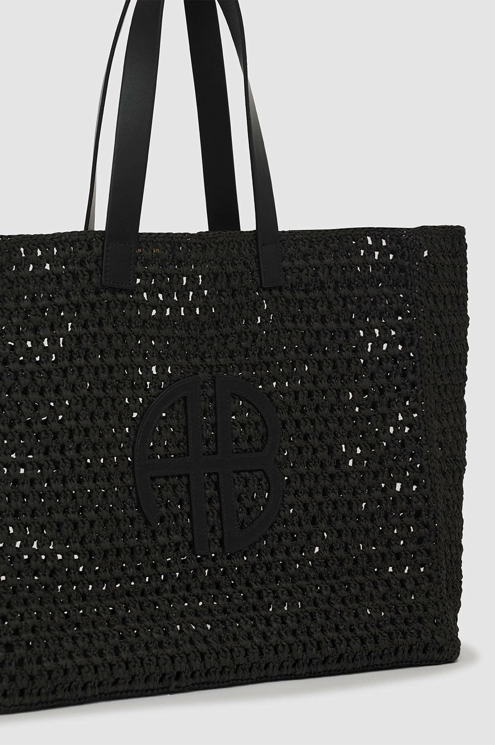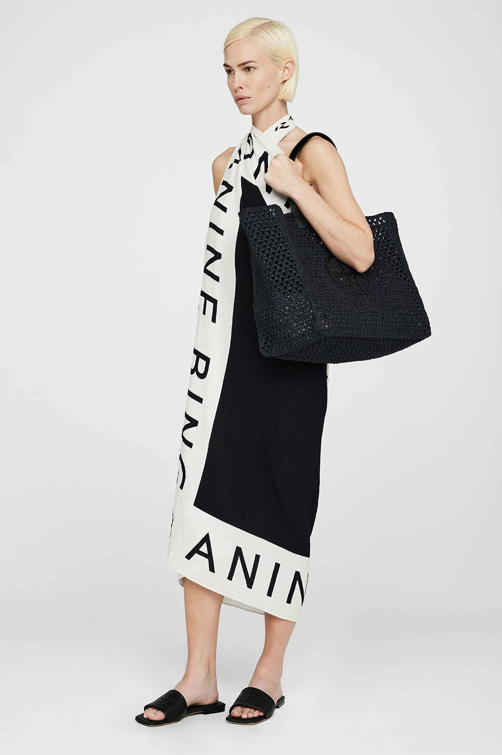 The Large Rio Tote is a vacation essential made from a woven seagrass material and is now in an updated black colour, this seasonal style features two tonal straps for easy transport and a coordinating Anine Bing monogram at the center front.