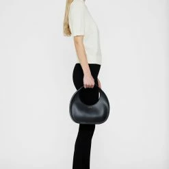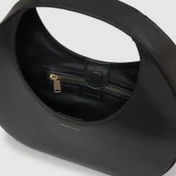 The Anine Bing Luna Bag in High Shine Black will perfectly complement any of your looks. Featuring a crescent-shaped shoulder bag crafted from 100% leather. This modern yet timeless accessory features a curved handle and magnetic top closure for easy access to your belongings. Its fully lined luxury cotton interior includes a single zip pocket for increased organization.