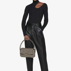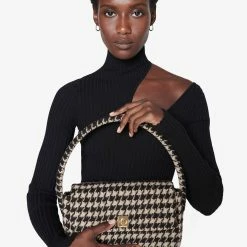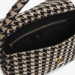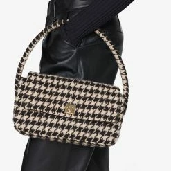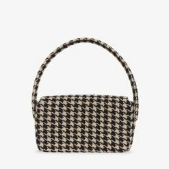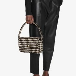 The Anine Bing Nico Bag in Houndstooth features a new ’90s-inspired baguette shape, elevated in signature houndstooth wool blend with cozy surface texture. Its interior is fully lined with a faille fabrication in contrast black, complete with an inner zip pocket for added storage. This day-to-night accessory features our new square turnlock hardware in 18k yellow gold and a tubular handle for a snug under-the-shoulder fit.