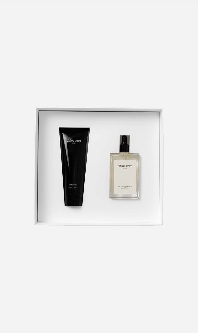 - A premium pre and post-styling leave-in treatment for all hair types, the hair & body perfume oil is formulated with carefully selected nutrients to protect and nourish the hair, smoothing frizz, sealing split ends and leaving hair glossy and shiny. The Hair & Body Perfume Oil projects against pollution, hot tools and features our exclusive Chloe Zara scent.