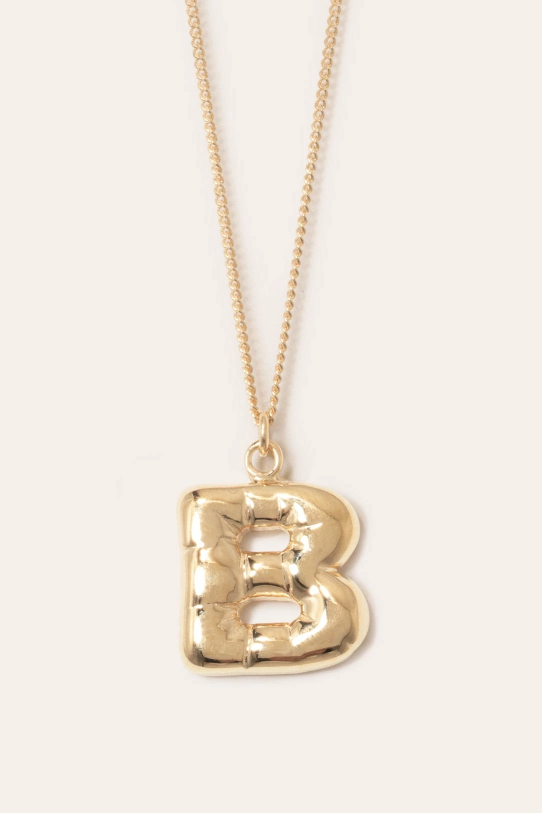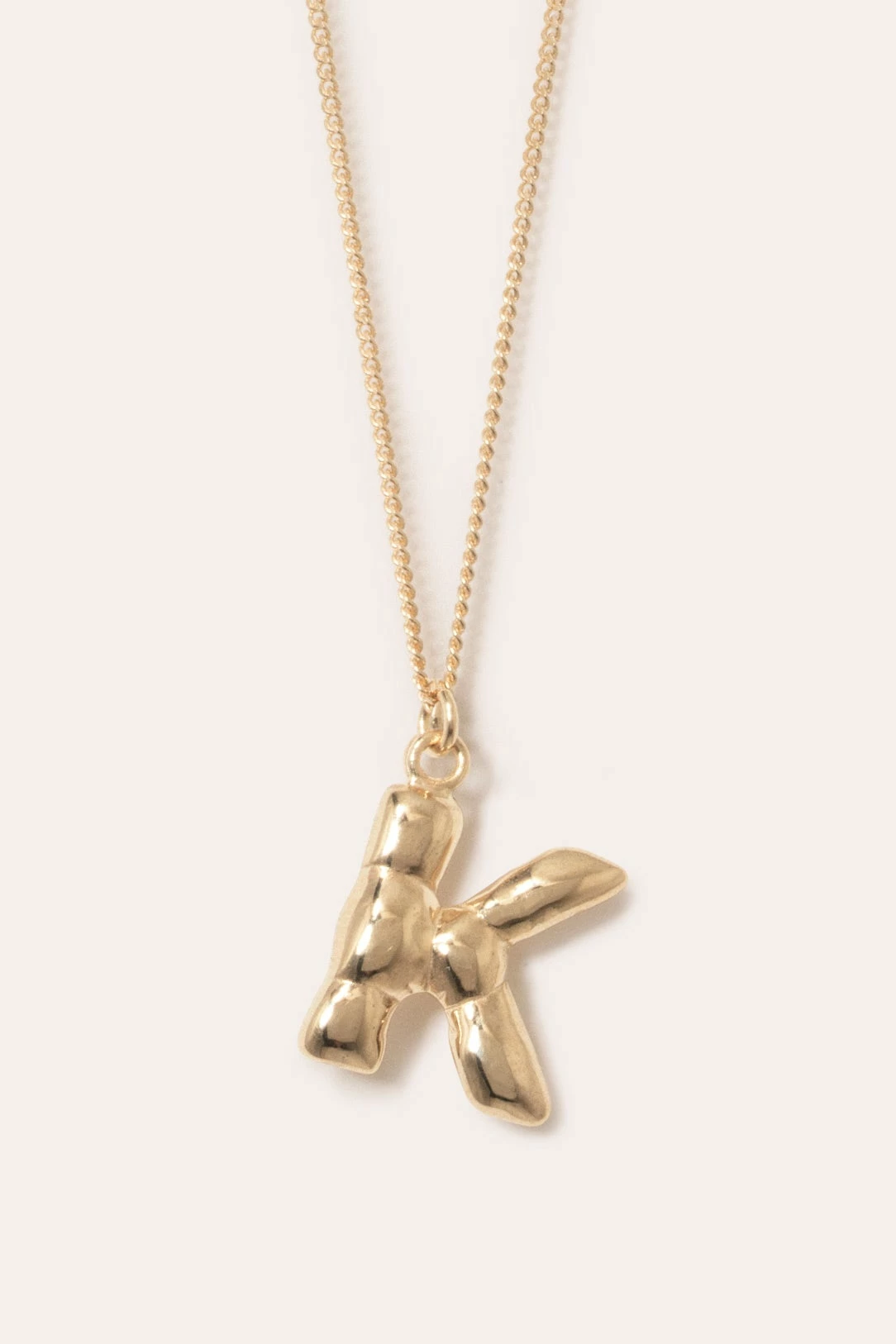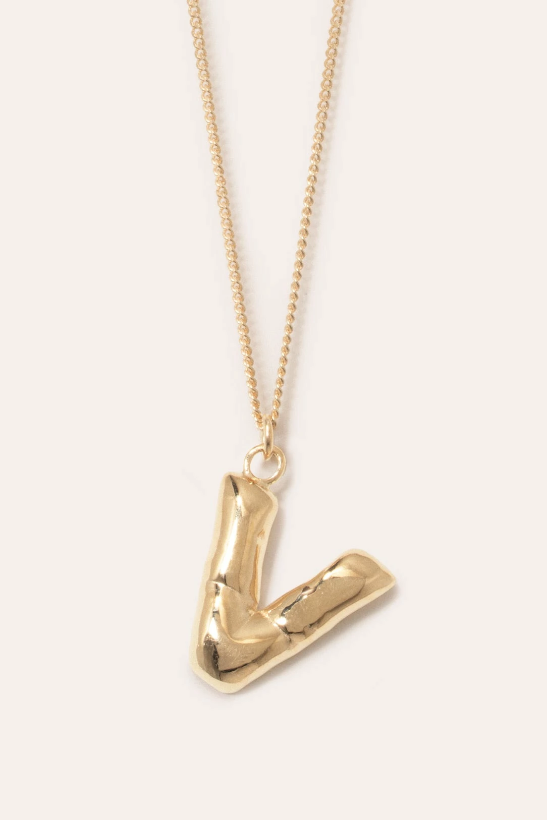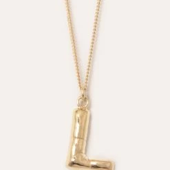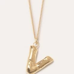 The Completed Works Classic Works Pendant in 14ct Gold Plated. The gold vermeil ‘A-Z’ letter pendants mimic the contours and folds of a helium balloon letter. Secured by a gold vermeil chain with a clip fastening.