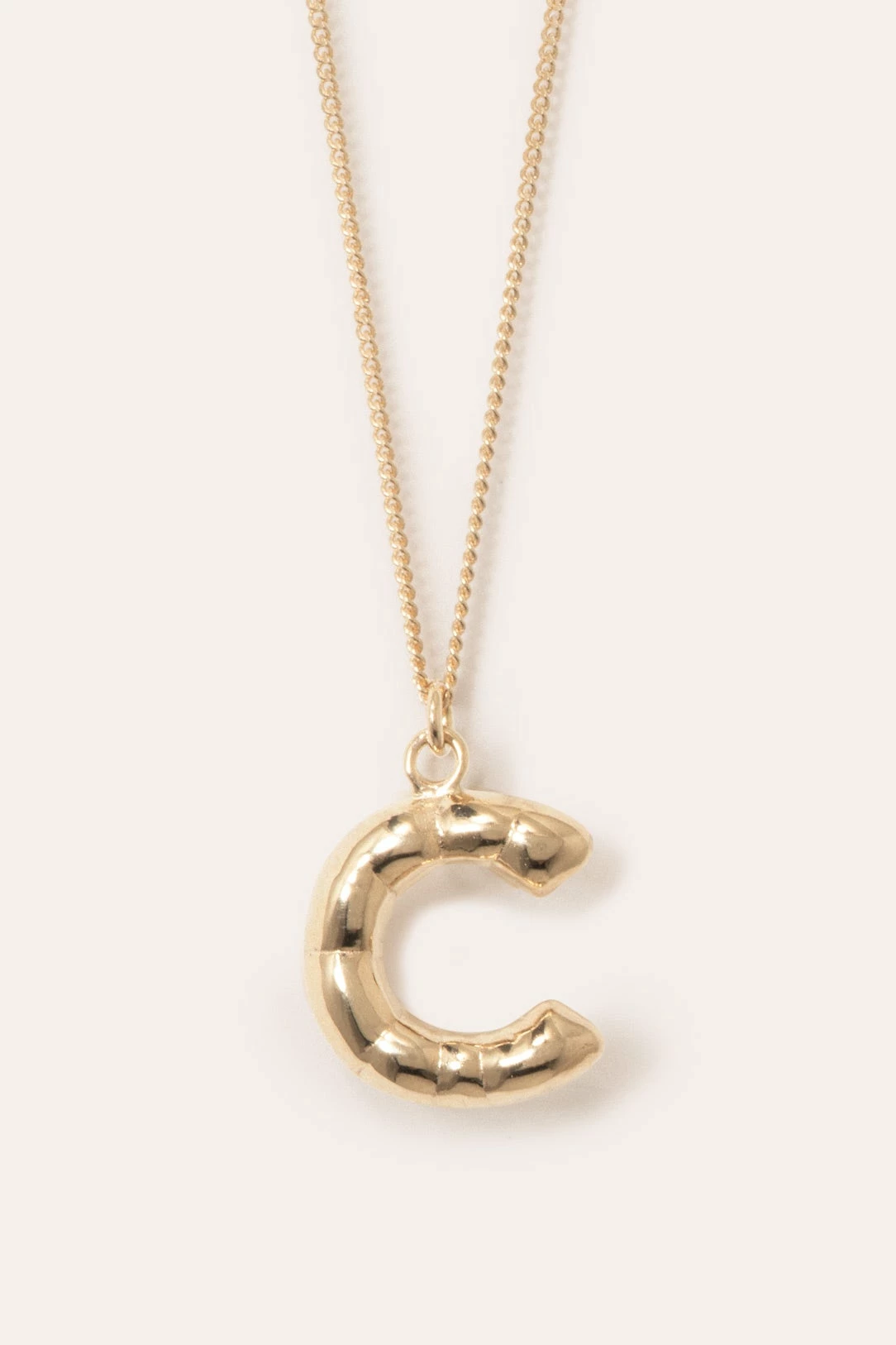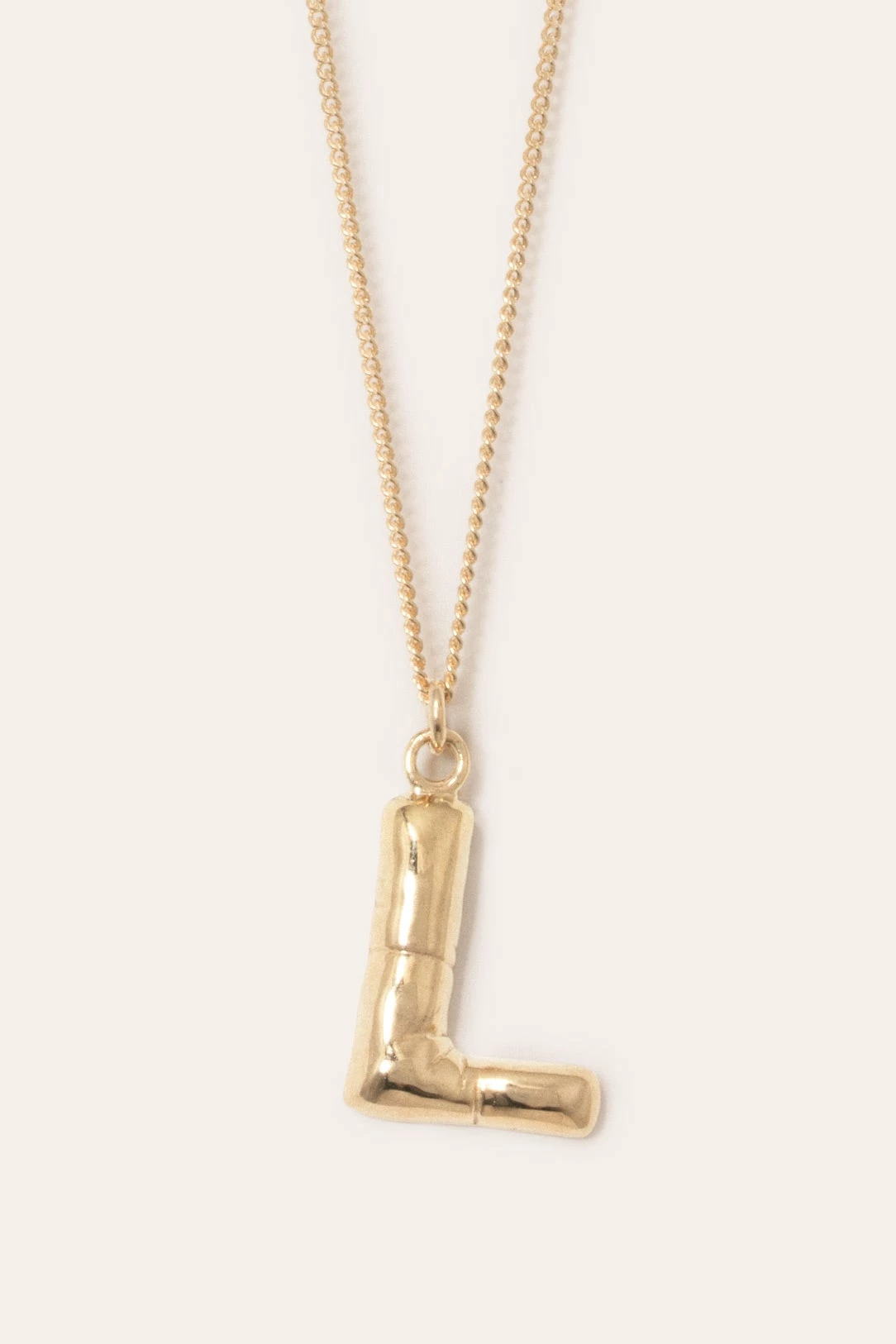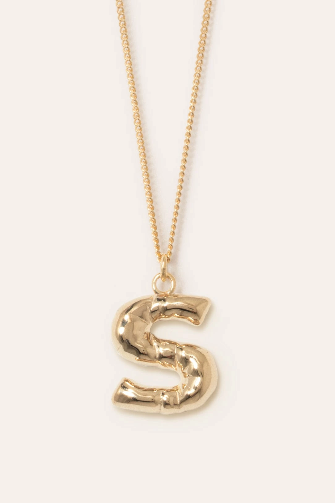 The Completed Works Classic Works Pendant in 14ct Gold Plated. The gold vermeil ‘A-Z’ letter pendants mimic the contours and folds of a helium balloon letter. Secured by a gold vermeil chain with a clip fastening.