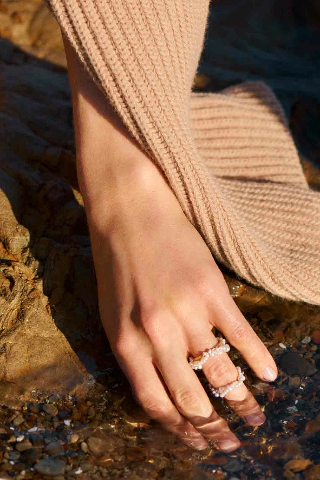 The Completed Works P22 Rings With Fresh Water Pearl in 14ct Gold Plated. A pair of rings formed with freshwater pearls following bands of gold vermeil.