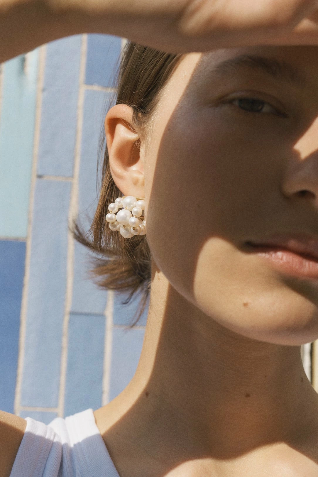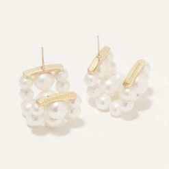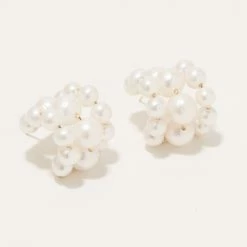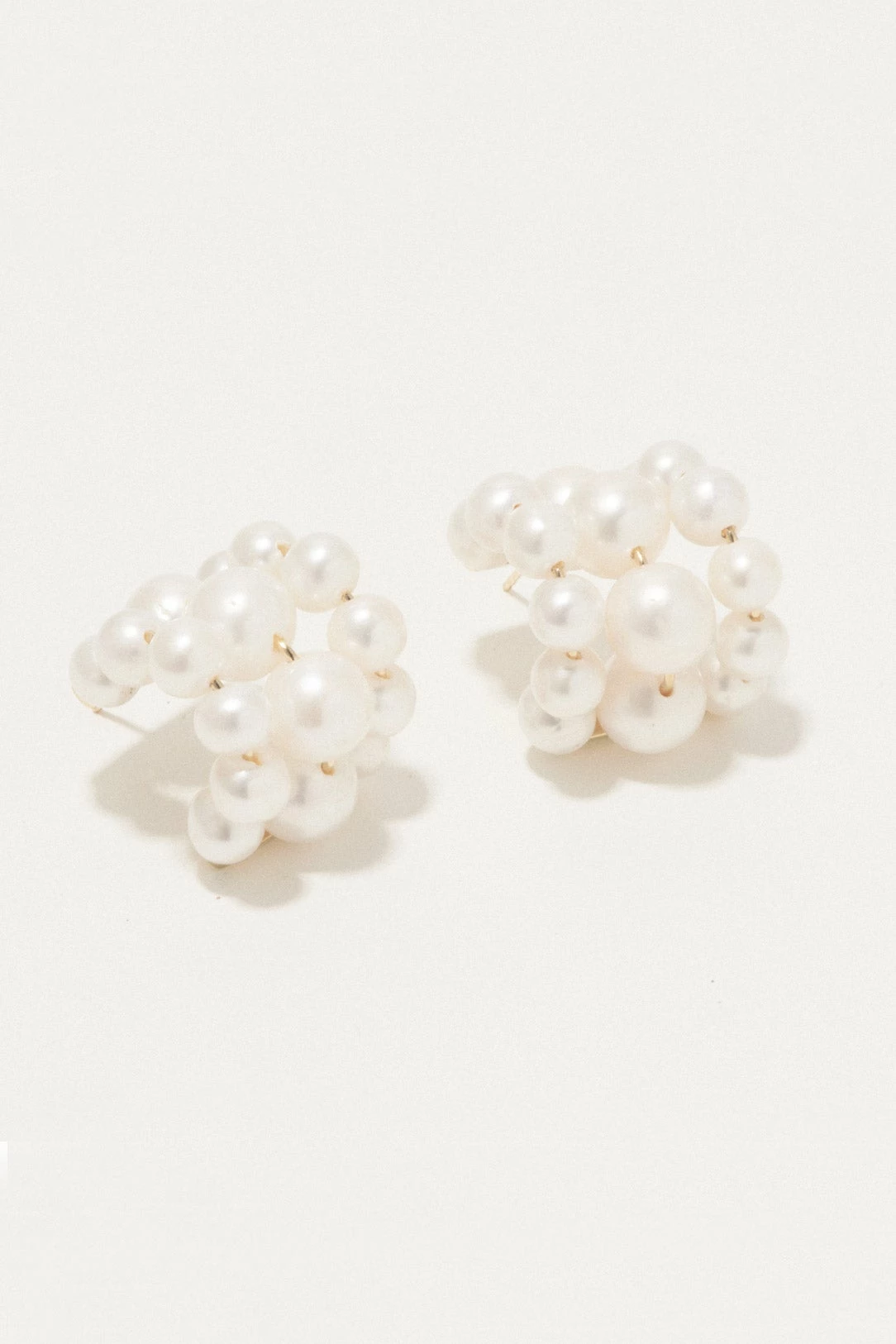 - The piece is thoughtfully handcrafted using freshwater pearls. Earring posts and butterfly backs are made using recycled silver and plated with 14ct yellow gold vermeil.