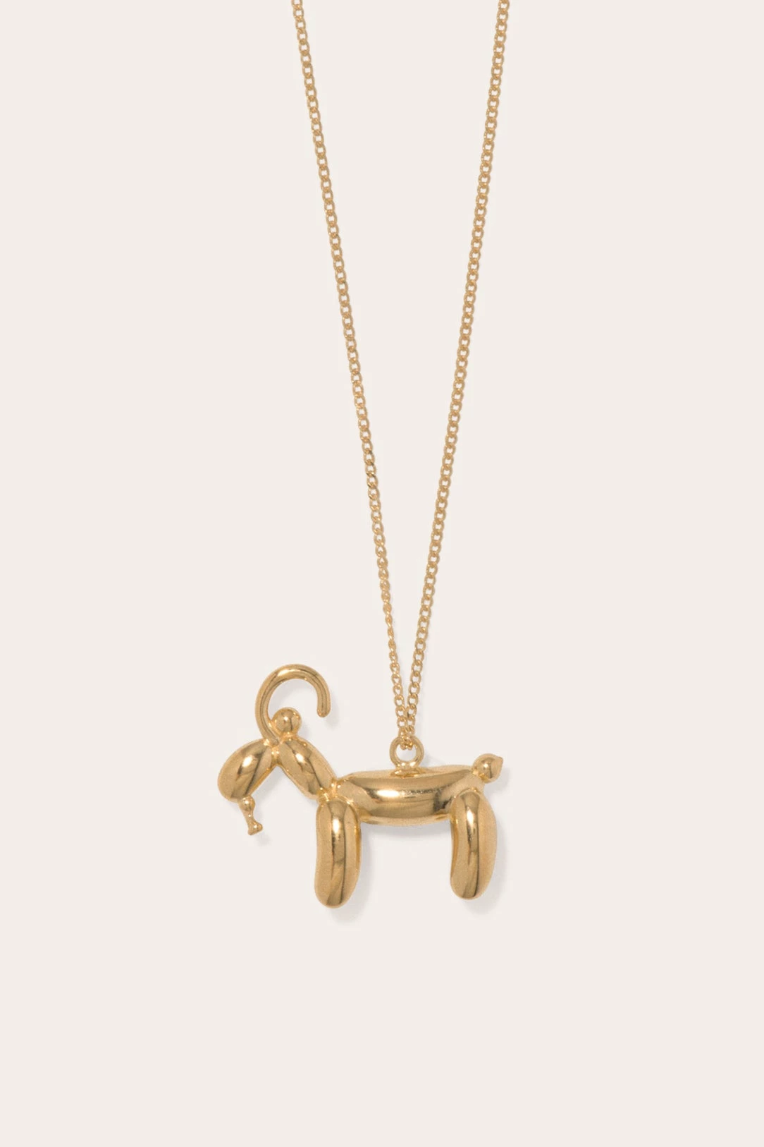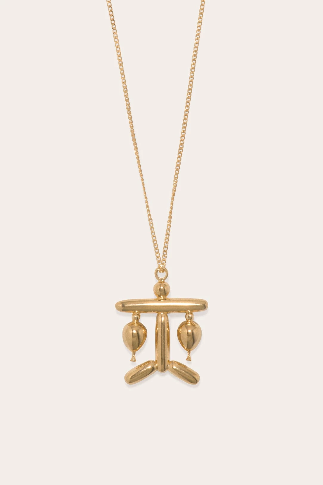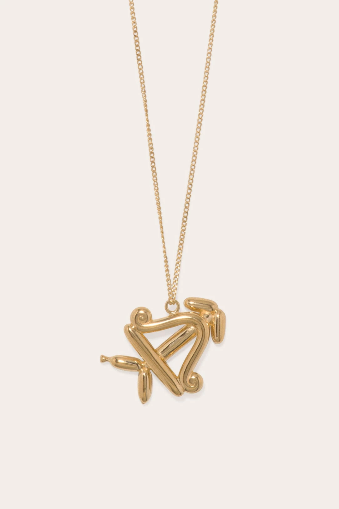 The completed Works Zodiac Balloon Pendant in 14ct Gold Plated. A collection of zodiac gold plated brass pendants in helium balloon shapes presented on a 14ct yellow gold vermeil chain.