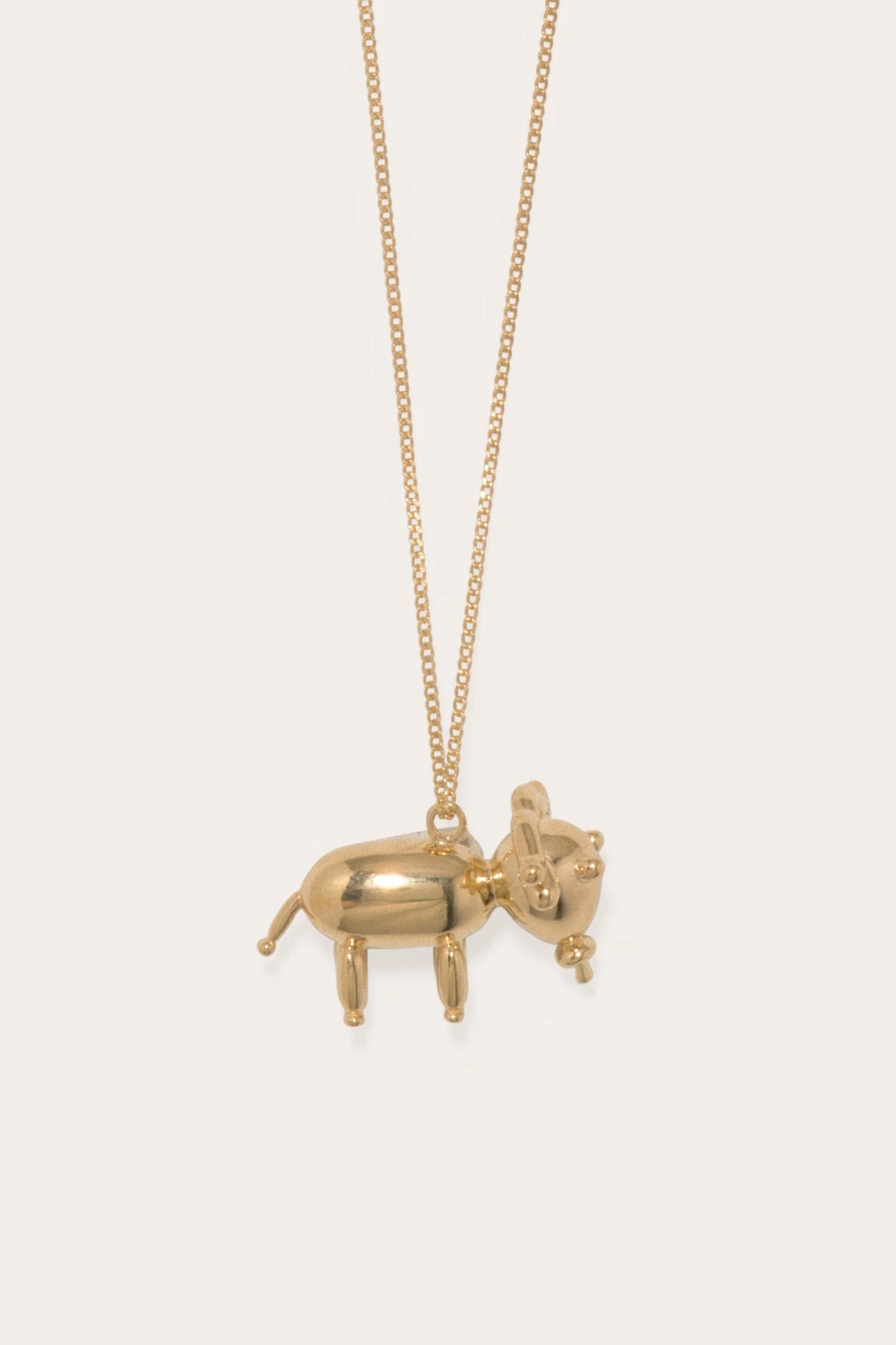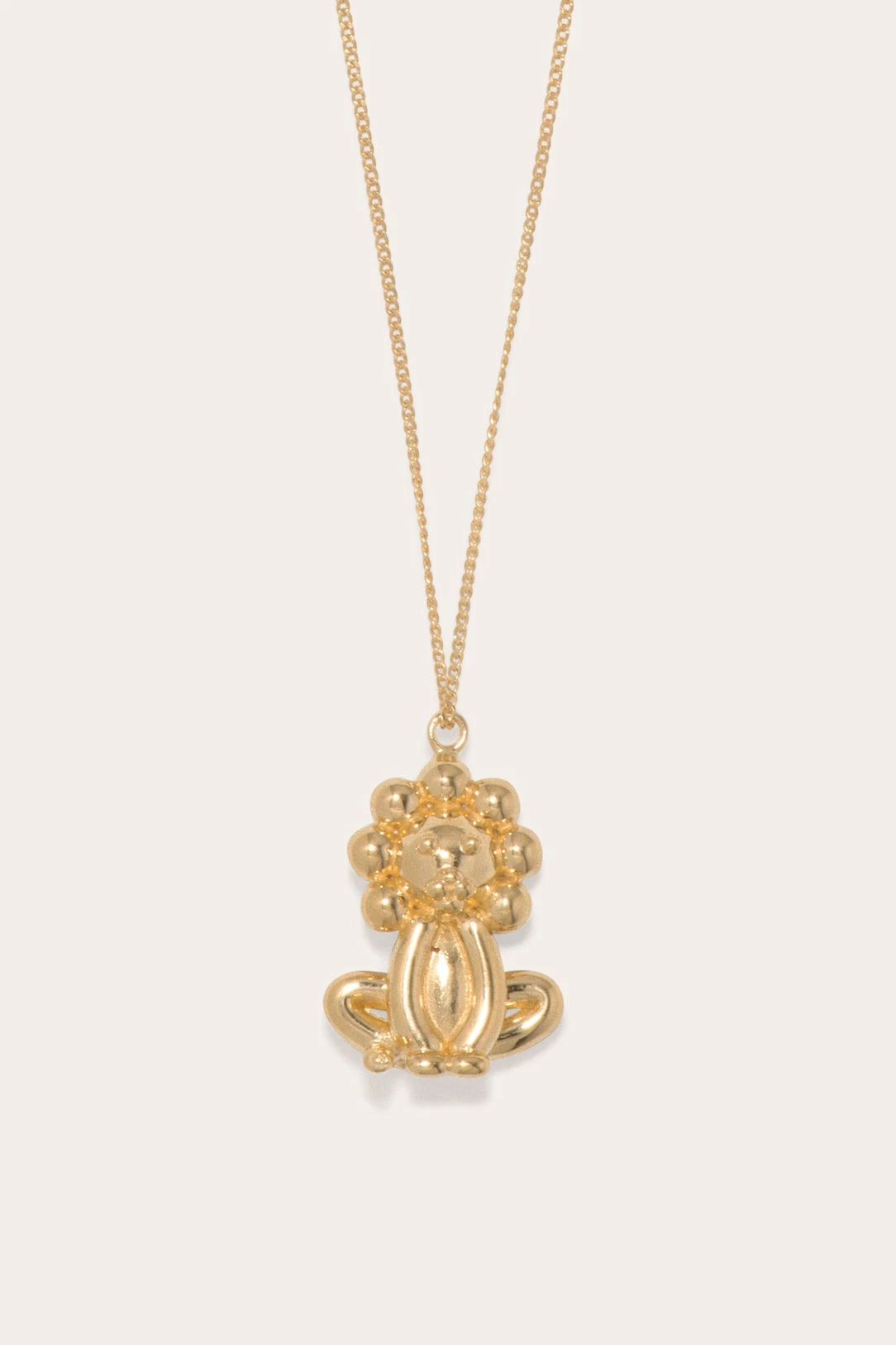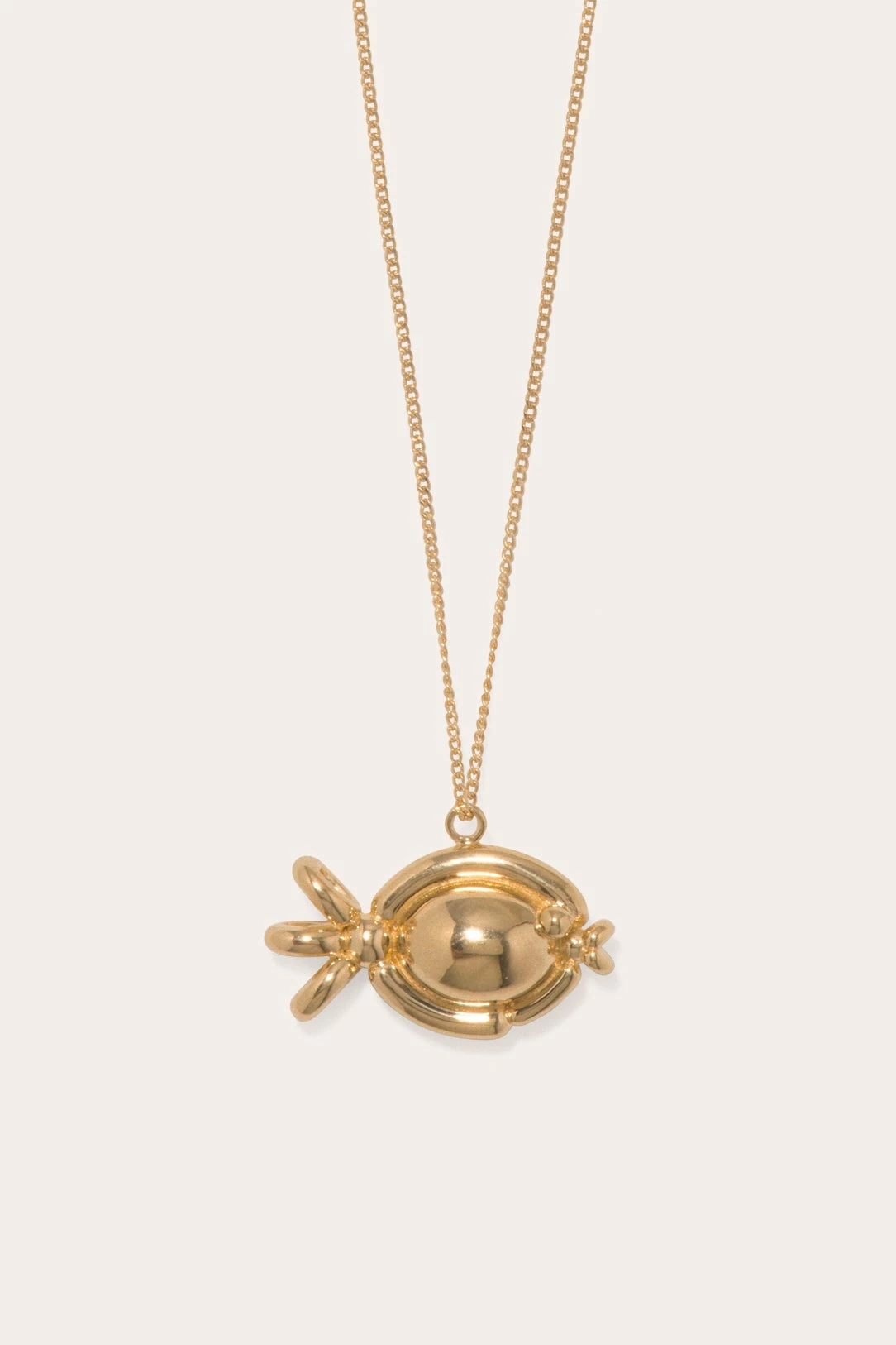 The completed Works Zodiac Balloon Pendant in 14ct Gold Plated. A collection of zodiac gold plated brass pendants in helium balloon shapes presented on a 14ct yellow gold vermeil chain.