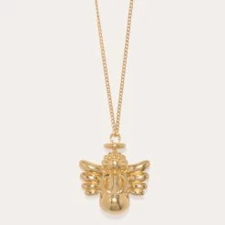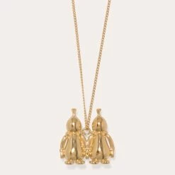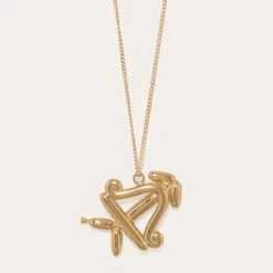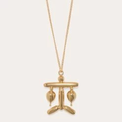 - The piece is thoughtfully handcrafted using 14ct yellow gold plated brass secured by a 14ct yellow gold vermeil chain. The chain has the adjustable lengths of 18″ and 20″