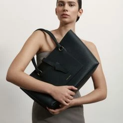 The Deadly Ponies Mr Breton in Black is the newest member of the Deadly Ponies tote family. Featuring a generous landscape silhouette, that is perfected for work and travel. Crafted with a generous zip compartment, slip pocket, and an internal card slot, that is all secured with the leather tab closure. Carry him in your hand, or on your shoulder with the dual handles. Designed to fit a 15″ laptop, making it perfect for your work and daily life.Â