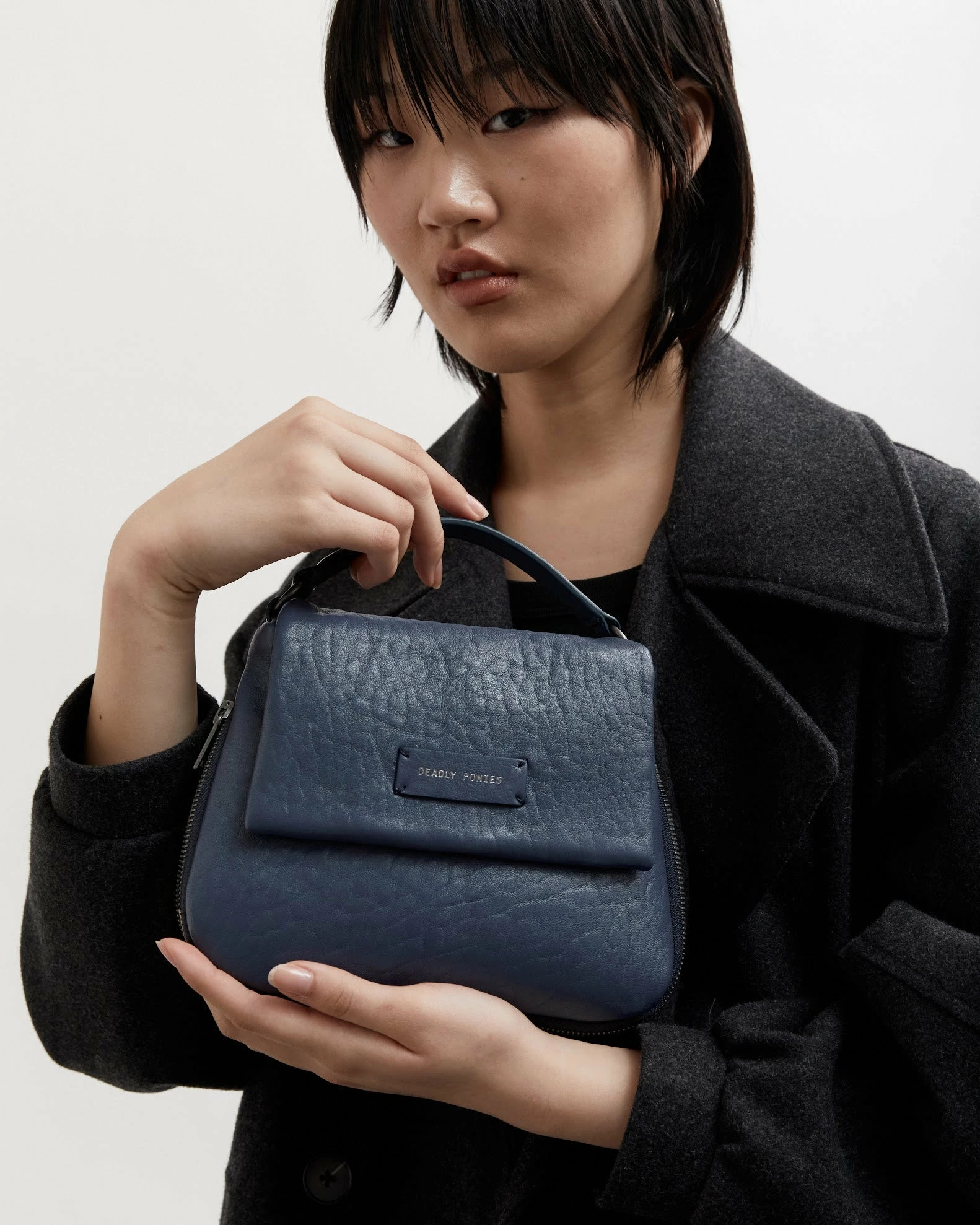 The Deadly Ponies Mr Caiman Mini Bulle in Seashadow is a compact addition to the Caiman family, Mr Caiman Mini is the perfect everyday companion. Our iconic Bulle leather, French for ‘bubble’, new gunmetal hardware offers a unique take on the classic leather crossbody bag, while his zipped gusset allows for either a slimline look or more space once expanded. A considered way of carrying your Mini Wallet and essentials, Mr Caiman Mini is an on-the-go luxury, personified.