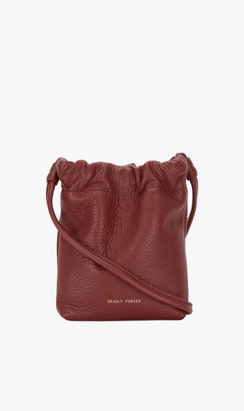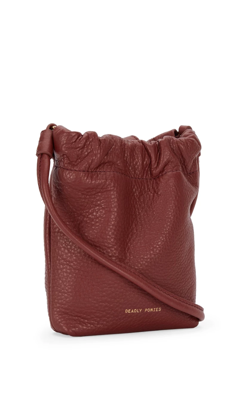 The Deadly Ponies Mr Cinch Pouch in Marsala is the newest sidekick. Following his older sibling’s subtle 90’s aesthetic, Mr Cinch Pouch is handcrafted in buttery soft Bovine leather, with a unique cinch detail and slightly curved silhouette. Perfect for those on-the-go, and with enough room for your phone, a Deadly Ponies Mini Wallet, and a few other must-have necessities, his internal slip pocket with fold over magnetic closures keeps it all close to hand. Opulent in new season hues and complimented by our signature brass hardware, wear Mr Cinch Pouch across the body thanks to his leather strap.