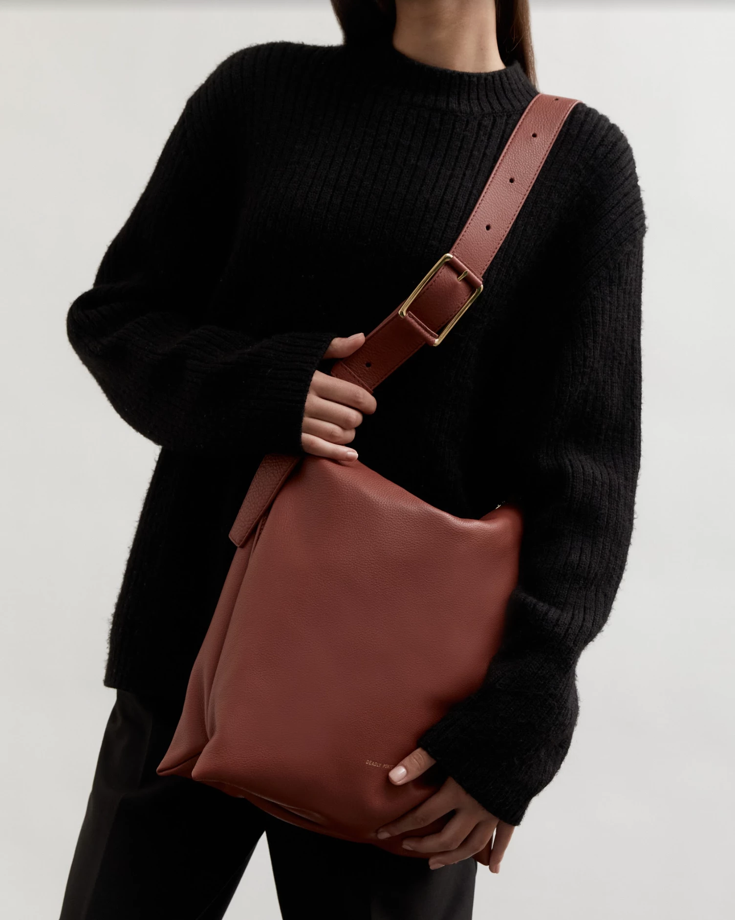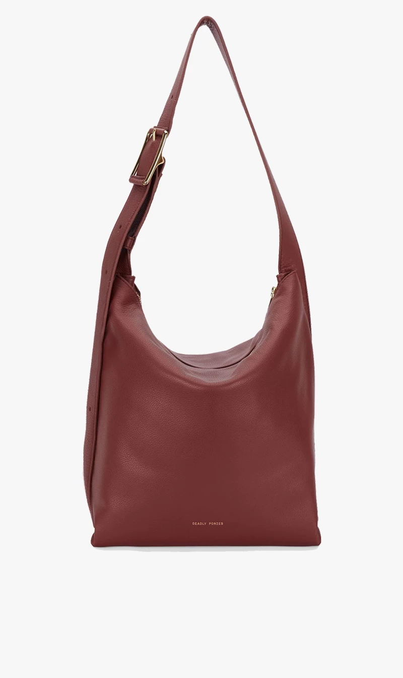 The Deadly Ponies Mr Maximese in Marsala is the newest addition to the stable. Handcrafted from sumptuous Bovine leather, he’s the new large shoulder bag with a slouchy exterior and zip closure, perfected for daily use. With an adjustable shoulder strap and oversized brass buckle, Mr Maximese houses an internal zip pocket, and two slip pockets, fitting a 15” laptop with ease. For a quick update, attach your favourite DP charm to his exterior 0-ring, he’s practicality perfection.