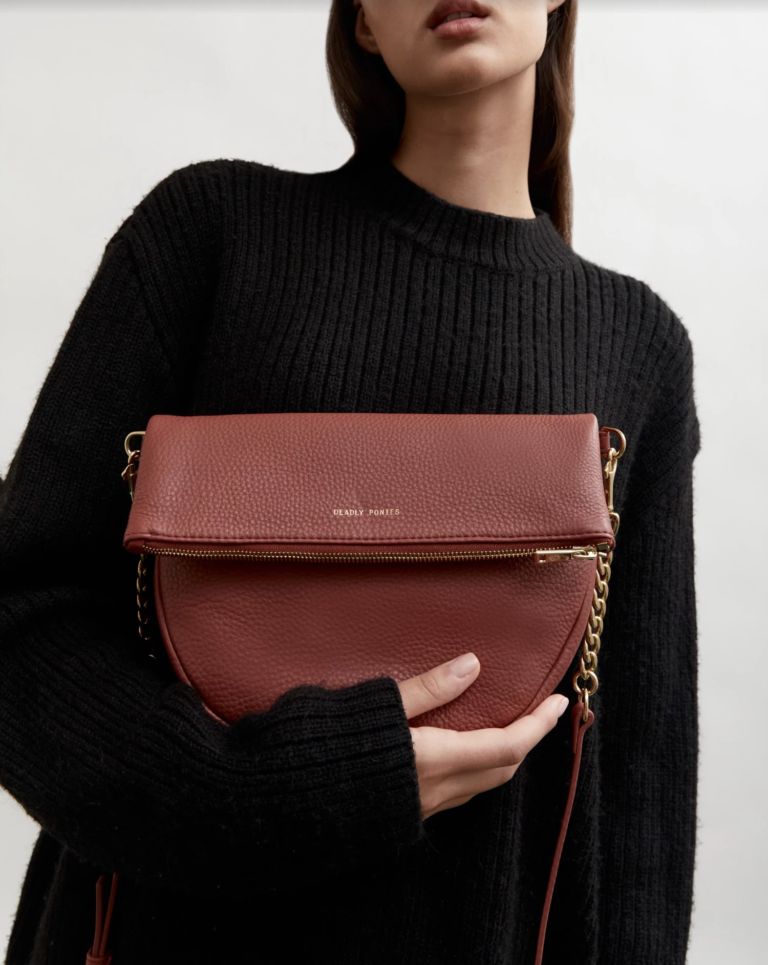 The Deadly Ponies Mr Mini Leopard in Marsala is the ultimate everyday pal. An enduring classic in the Deadly Ponies collection. Compact and practical, he’s a multifunctional design perfect for almost any occasion. Handcrafted from buttery soft Bovine leather, this slimline crossbody bag has a folding capability with a detachable strap and two separate compartments, so no essentials are ever left behind.