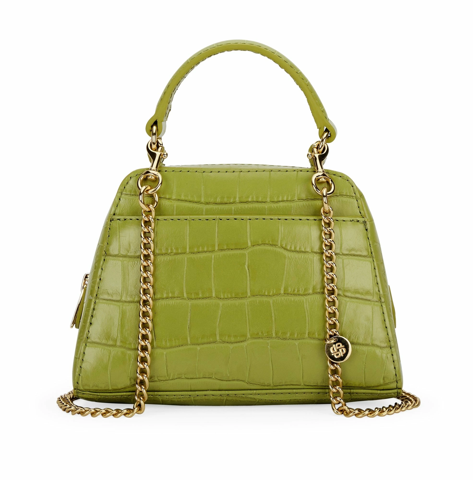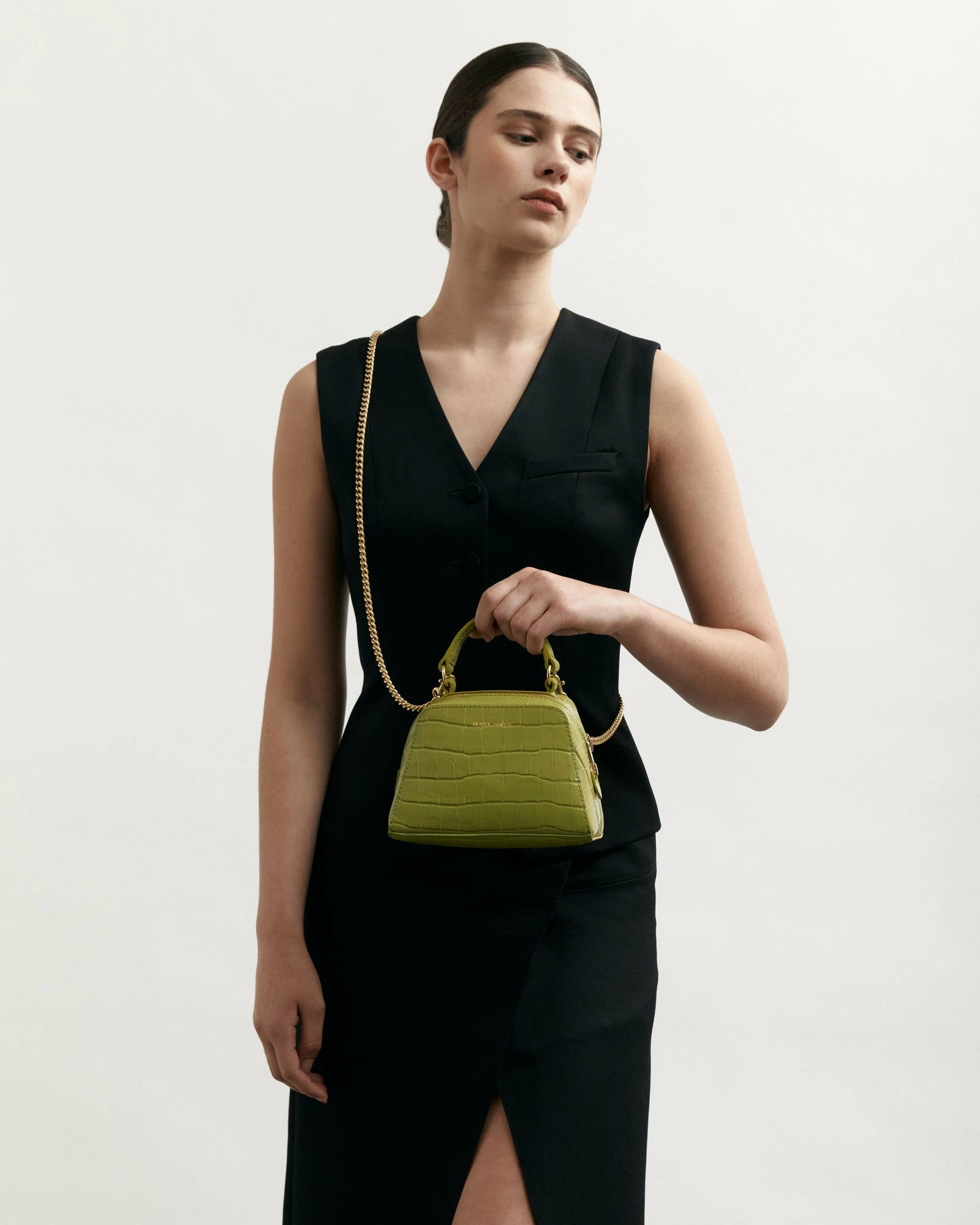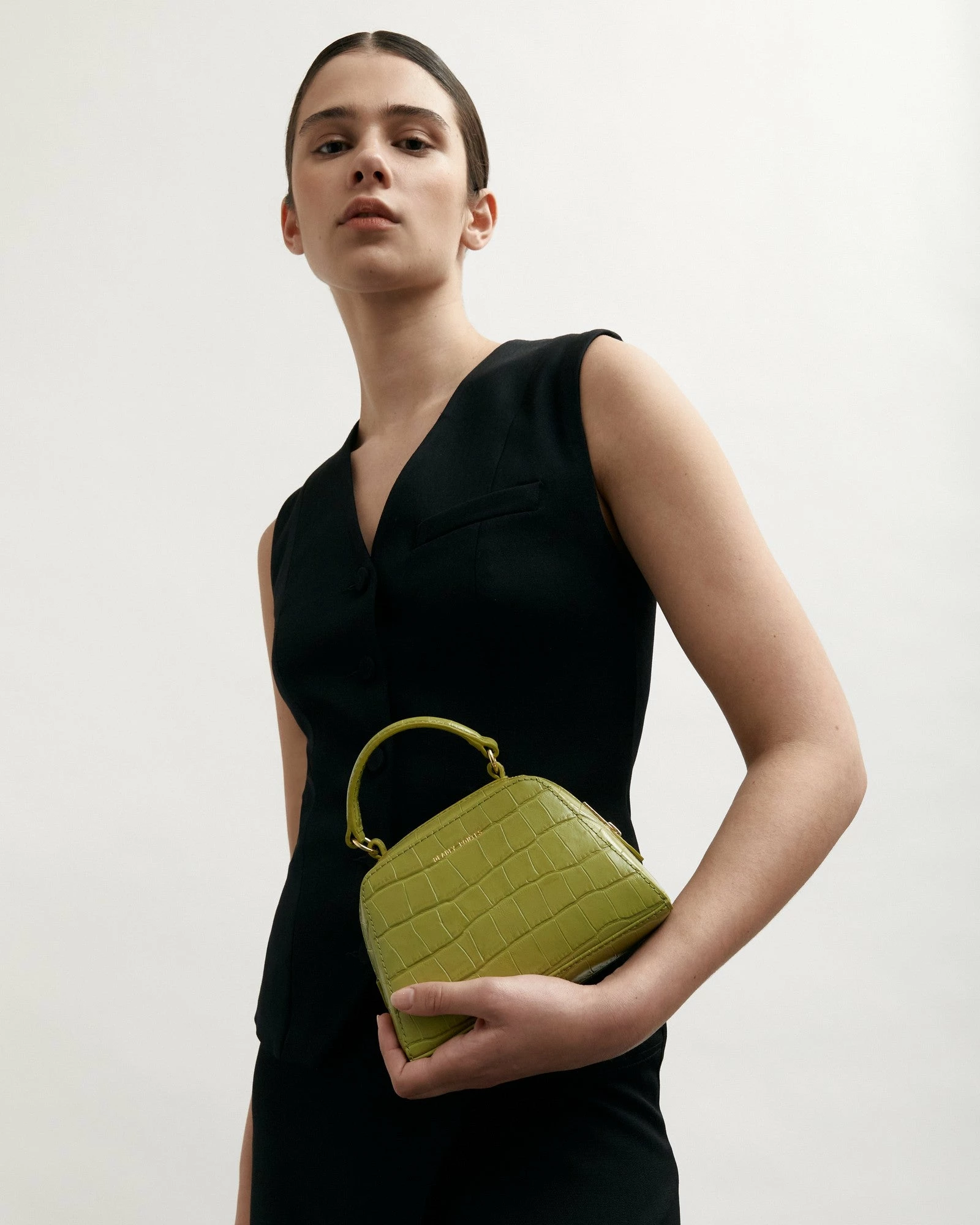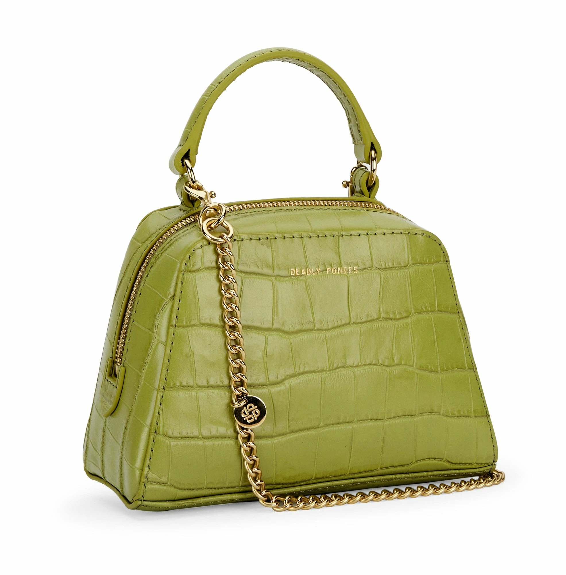 Mr. Mini Verne – Croc from Deadly Ponies is the personification of pint-sized luxury. Finely crafted from sumptuous croc-embossed Bovine leather, Mr Mini Verne – Croc is small, structured, and sleek. Designed to be carried in hand by his top handle or worn as a mini crossbody, Mr Mini Verne – Croc returns for Summer 22 with a new detachable brass chain strap and leather shoulder pad. Internal and external slip pockets see Mr Mini Verne – Croc offer a surprising amount of space, while a zip closure keeps your belongings safe and secure. A bold addition to any wardrobe, he’s sure to be a seasonal sell-out.