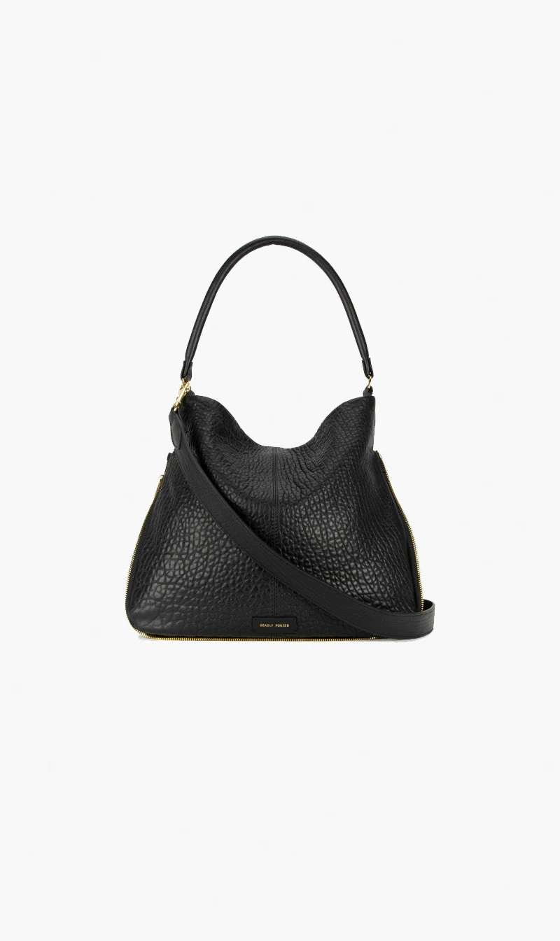 Simplicity speaks volumes with the effortlessly easy design of the Deadly Ponies Mr Molten Tote. A single handle makes this tote a grab-and-go piece to complement your new season wardrobe and beyond. Our delectably soft bulle lamb leather is paired with brass features, a cotton lining and a number of practical pockets to keep your favourite essentials safe and secure. A detachable shoulder strap and clicker closure are the finishing touches on this new classic.