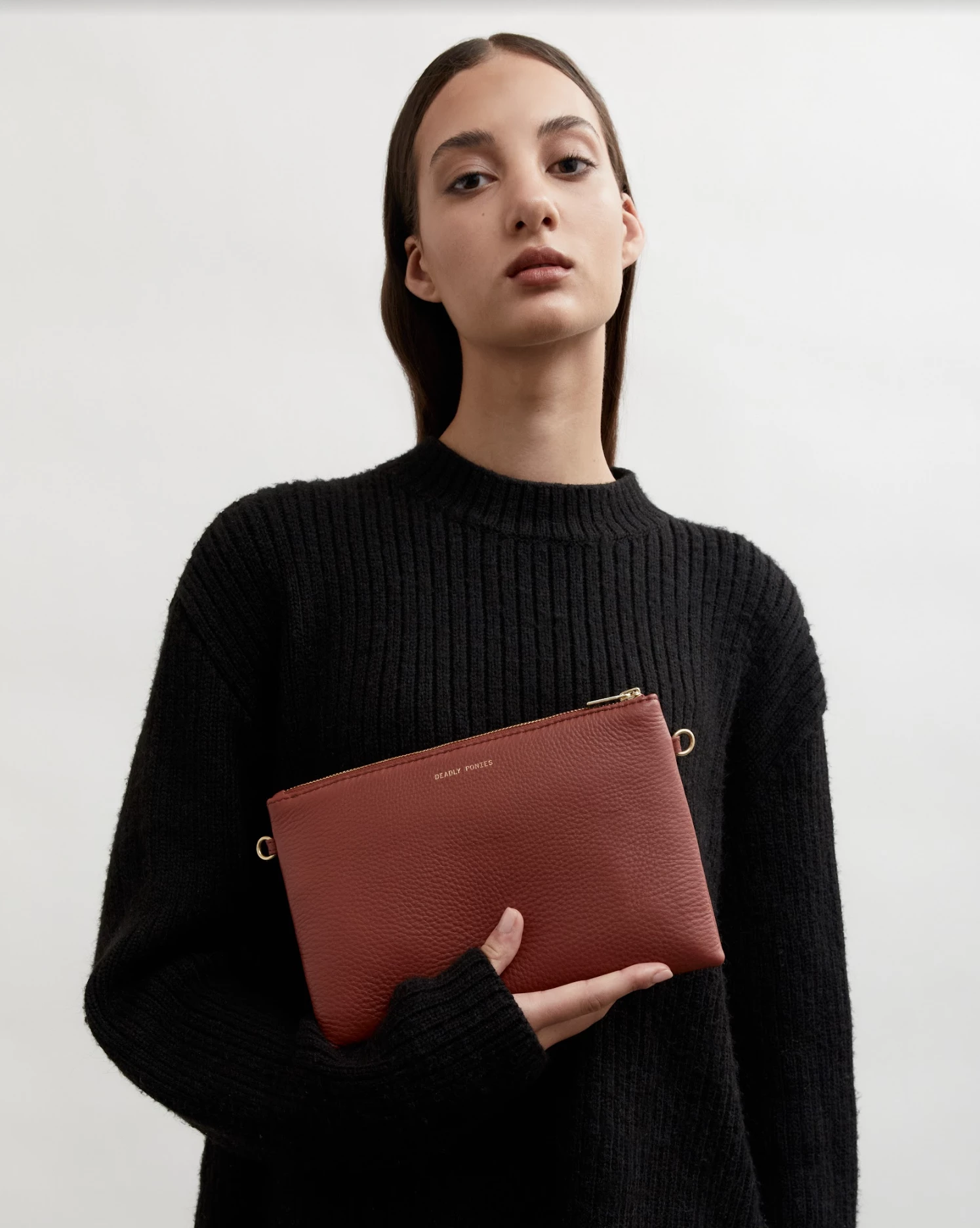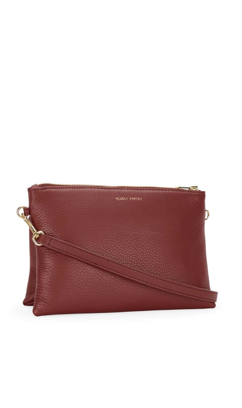 The Deadly Ponies Mr Siamese in Marsala is an elevated classic. Recognisable anywhere, the double-gusset clutch is lightweight and compact, yet spacious enough for your must-have belongings. Transitioning seamlessly from day to night, Mr Siamese is crafted in buttery Bovine leather and can be carried as a clutch, or worn crossbody and on the shoulder, using the adjustable leather strap. He comes complete with two interior slip pockets, making for plenty of room to carry your Deadly Ponies wallet and other necessities. A hidden zip pocket on the reverse ensures easy access to your go-to essentials.