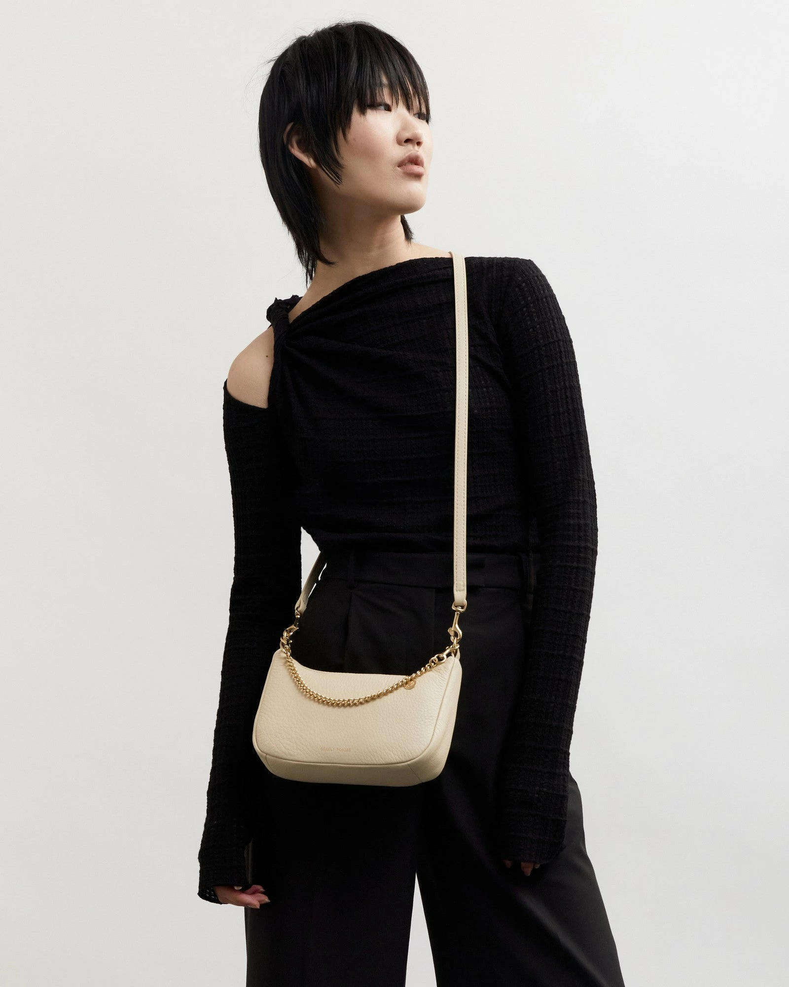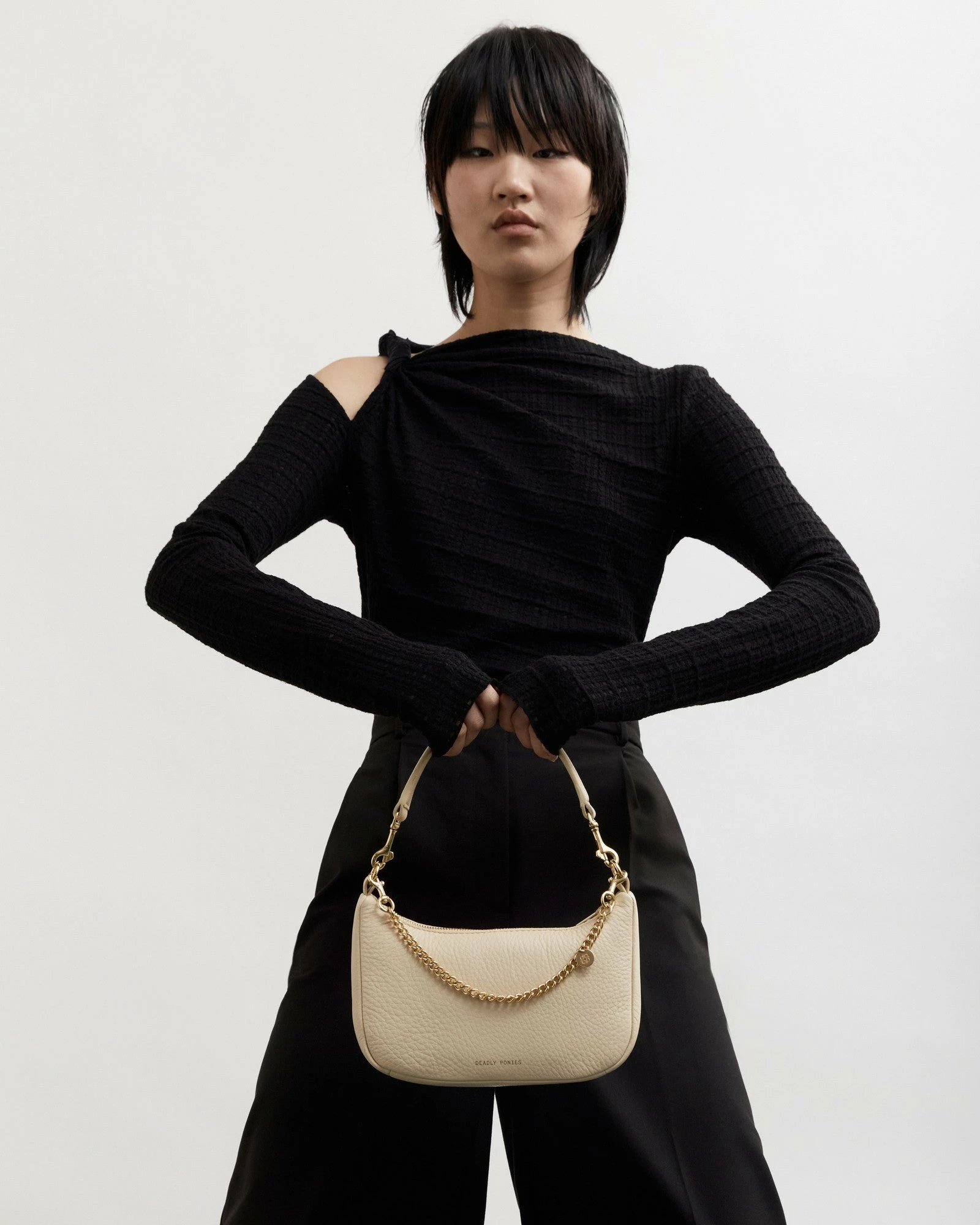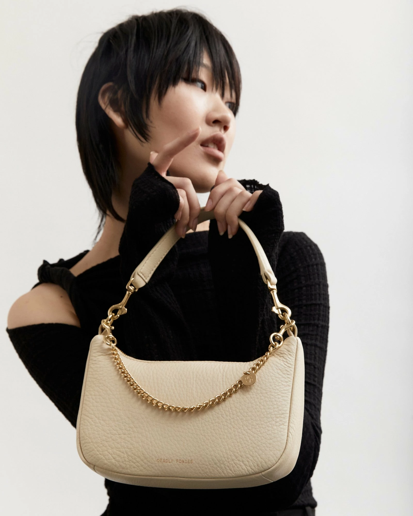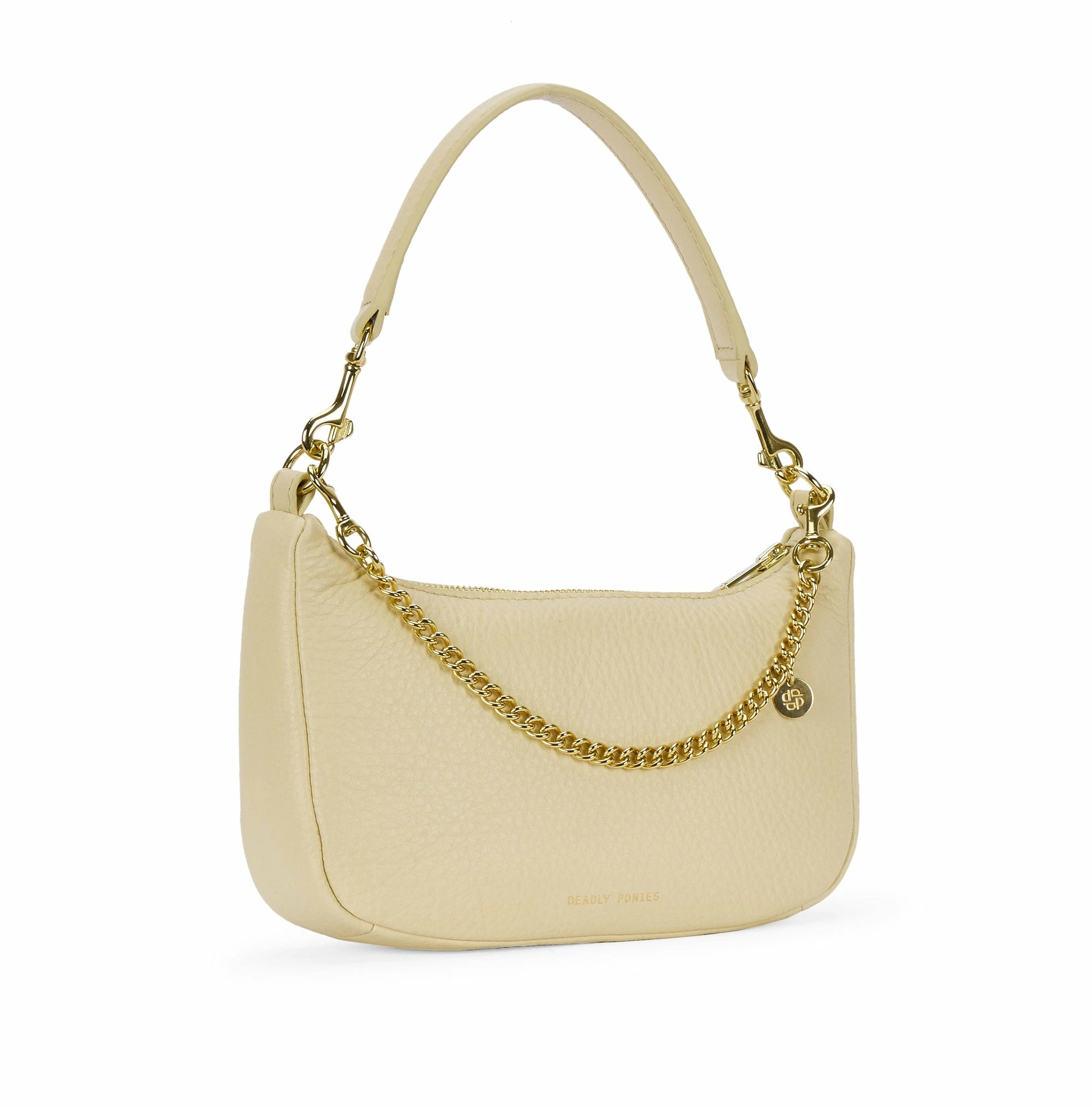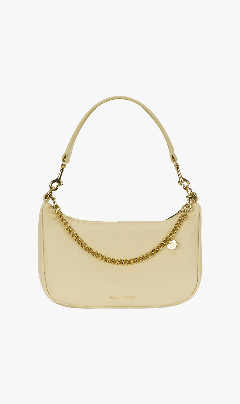 Deadly Ponies Mr Sling Micro in Lemongrass is a pint-sized piece with a 90s aesthetic. It is the perfect nighttime companion, with a surprising amount of space for all of your night-out must-haves. Designed to be highly adaptable, it has a detachable top handle, crossbody strap, and a front-facing chain detail. He also contains a zip pocket, slip pocket, and zip closure to keep your essentials close to your hand. Crafted by hand from buttery soft bovine leather, Mr Sling is the perfect mini bag addition to your wardrobe.Â