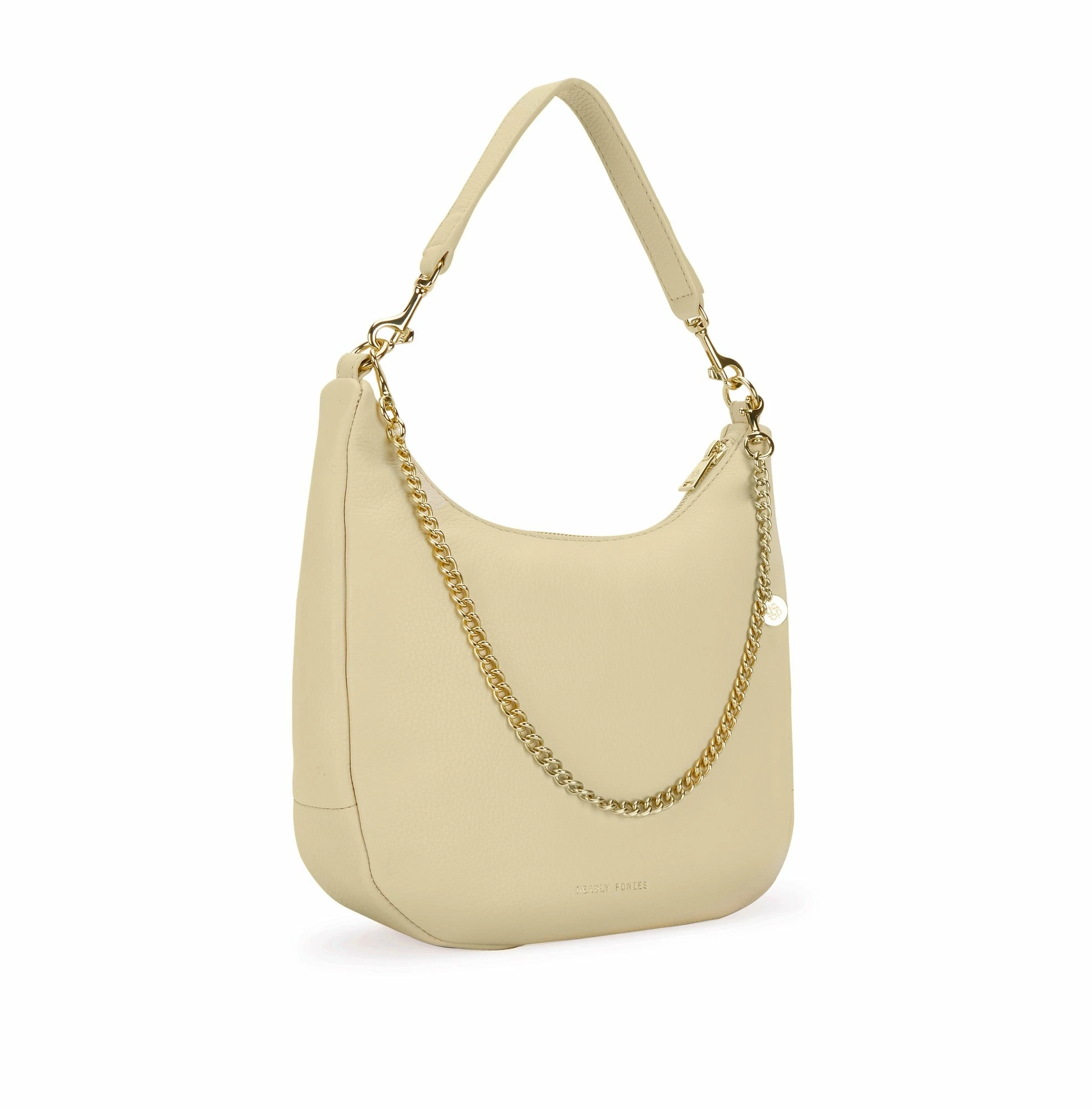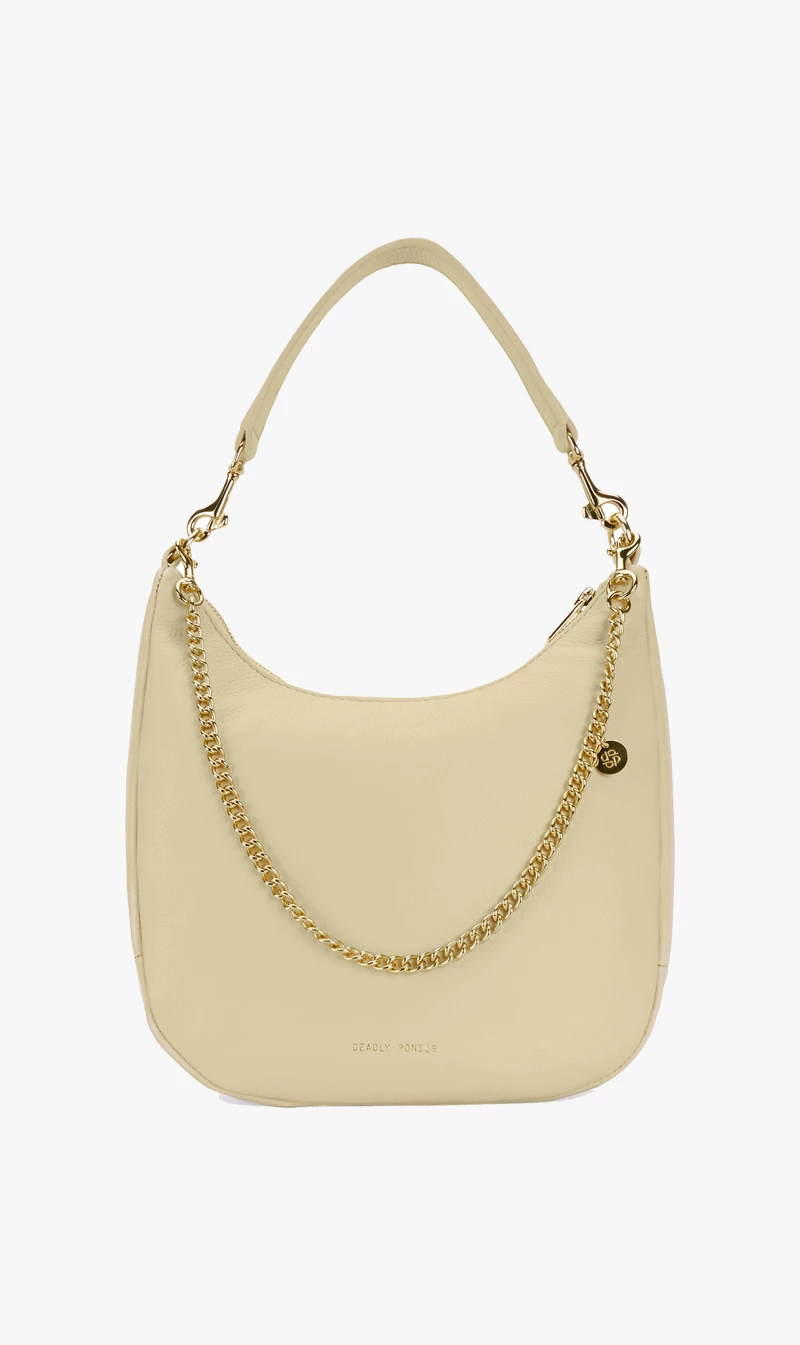 The Deadly Ponies Mr Sling Mini in Lemongrass is a firm favourite. Reinvented for the new season in a fun lemon yellow that will add a pop of colour to your look. Designed to be deceivingly spacious with a unique shape that is presented with a detachable top handle, chain strap adornment, and adjustable cross-body bag strap. Crafted with butterfly bovine leather, along with an interior slip pocket and zip pocket, making the Mr Sling a day-to-day must-have!Â