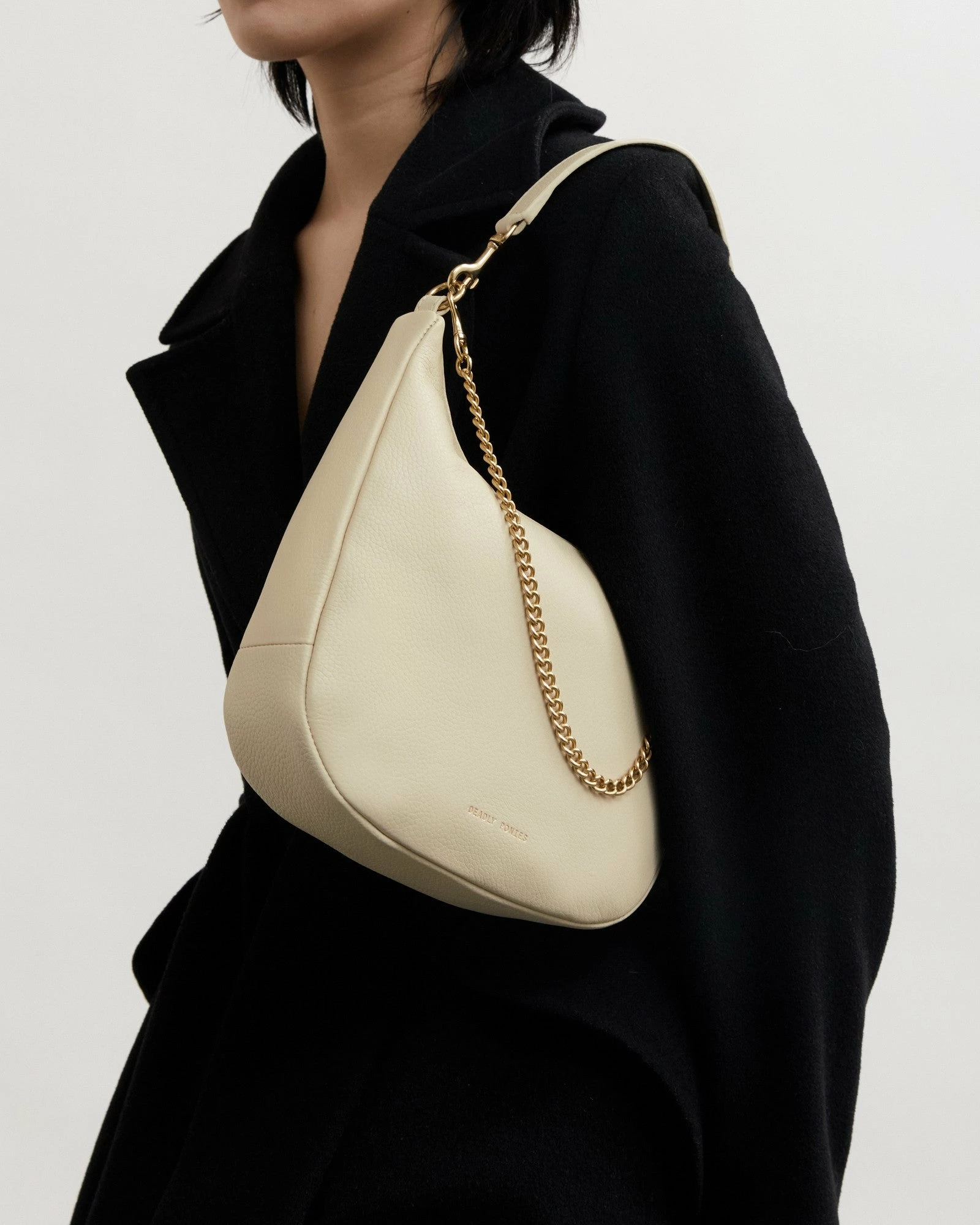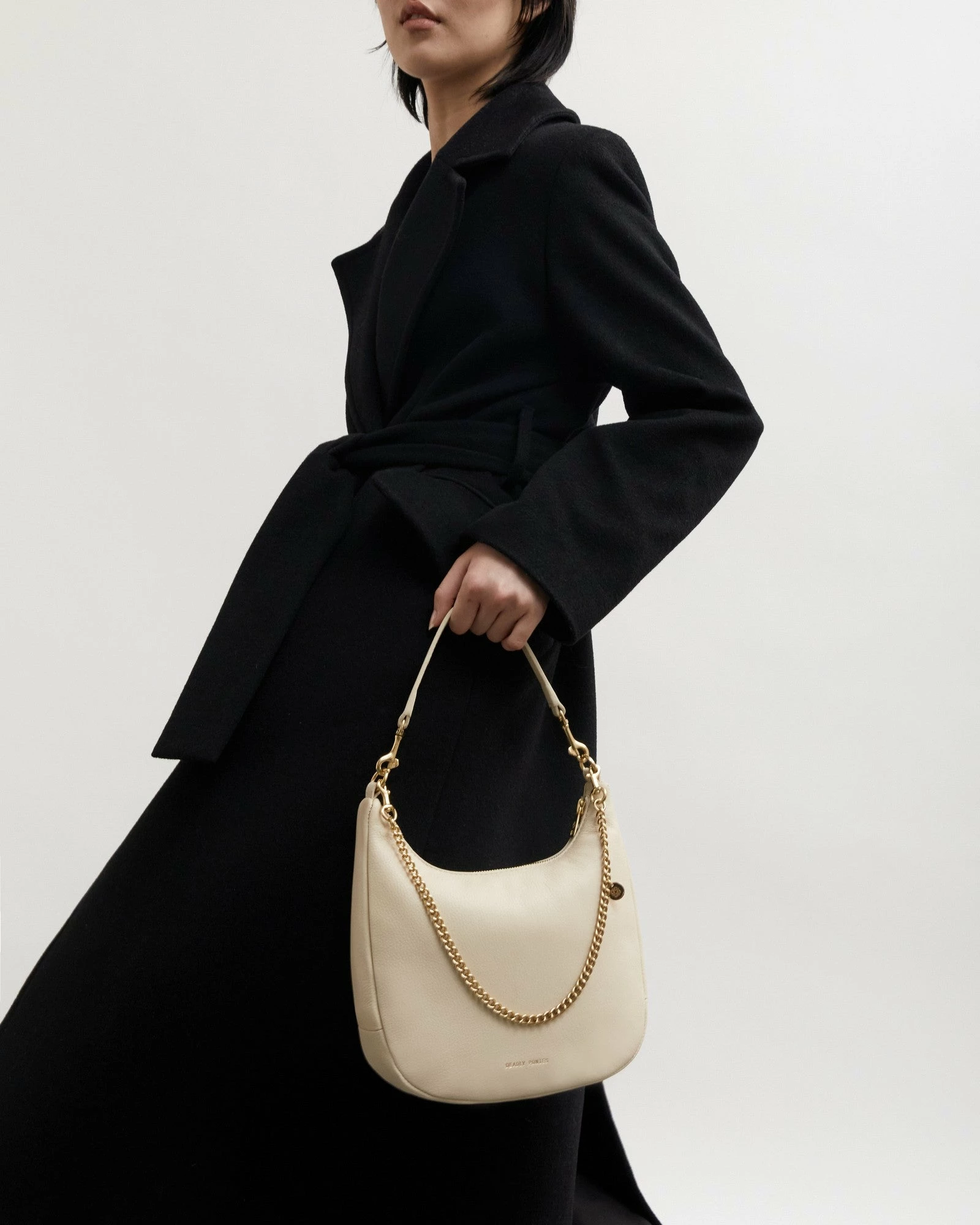 - Detachable brass chain detail on front