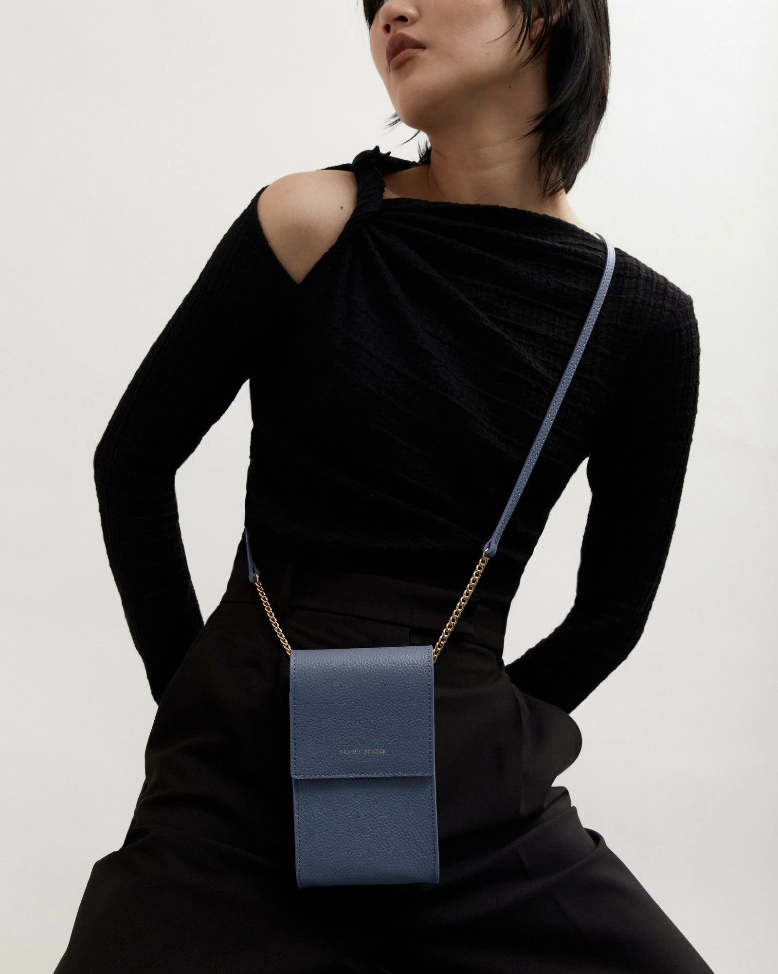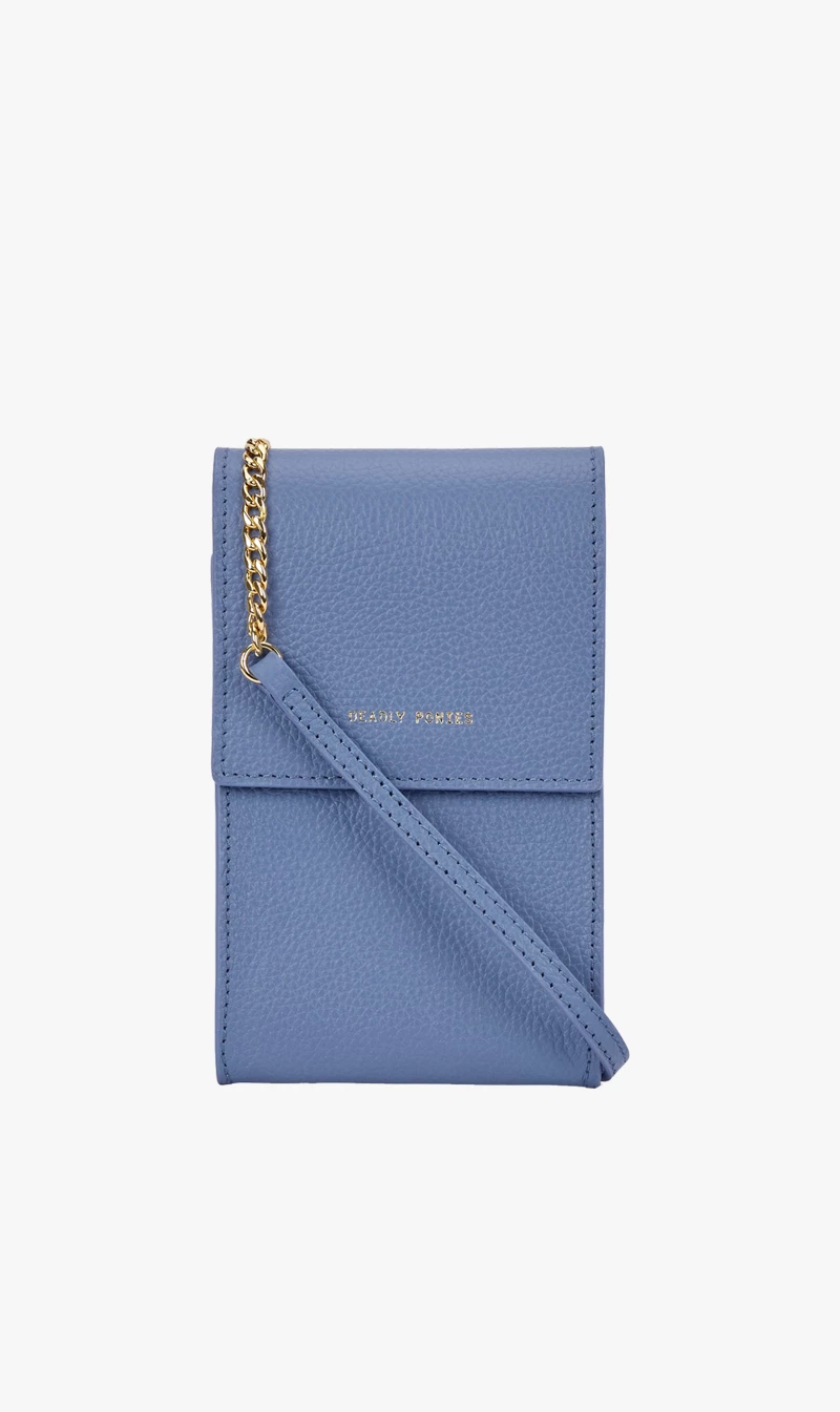 The Deadly Ponies Poucheroo in Denim is the ultimate plus one. Thanks to its ability to hold not only your phone but multiple cards and cash as well. This season sees Poucheroo level up with a fold-over magnetic closure, while his leather strap with brass chain extension ensures wearability for any occasion. Featuring two internal card slots, and an interior slip pocket, your belongings are always secure close to hand. Handcrafted in sumptuous Bovine leather, he’s a luxurious gift for a loved one – or for your lovely self.