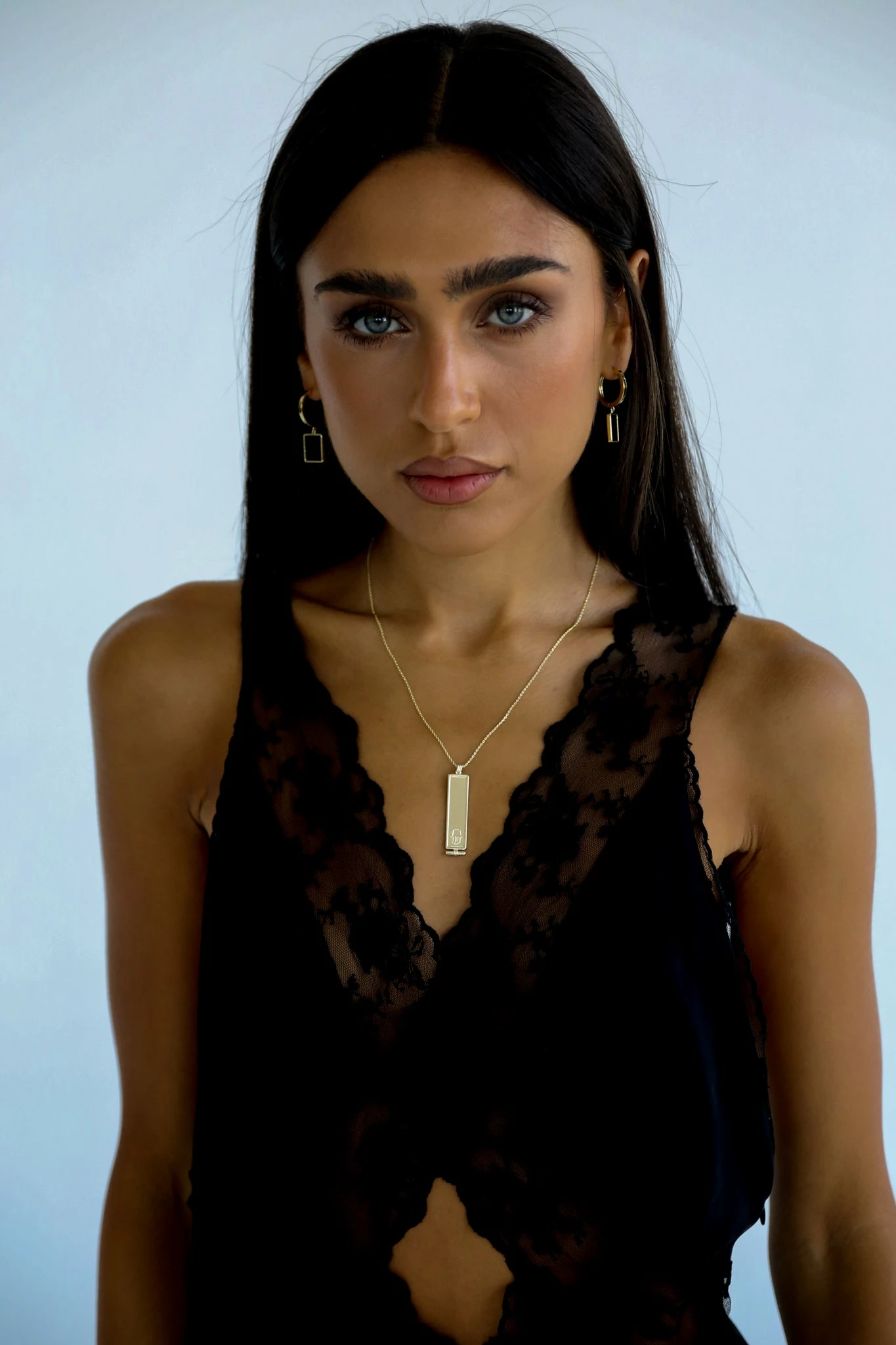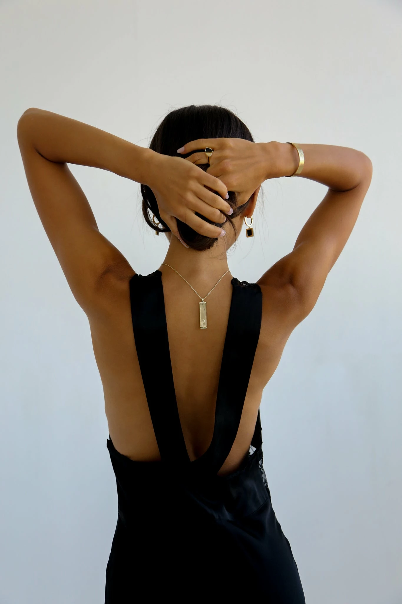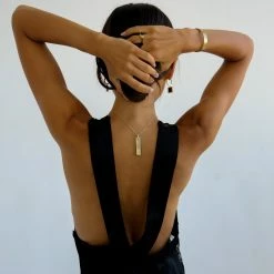 The Dhahab Hamsa Necklace (or) the hand of Fatima, is an ancient Middle Eastern symbol that holds a variety of meanings across cultures. Nevertheless, it is regarded in all faiths as a symbol of unity, power, and protection. Embossed on a statement gold bar, with a staple dainty chain.