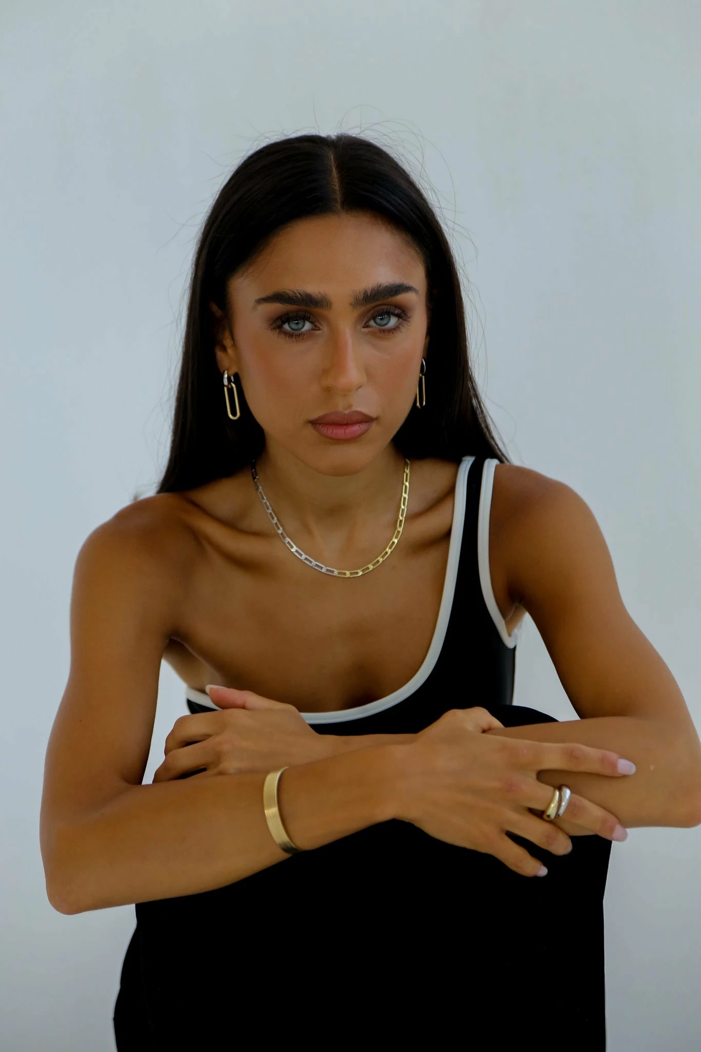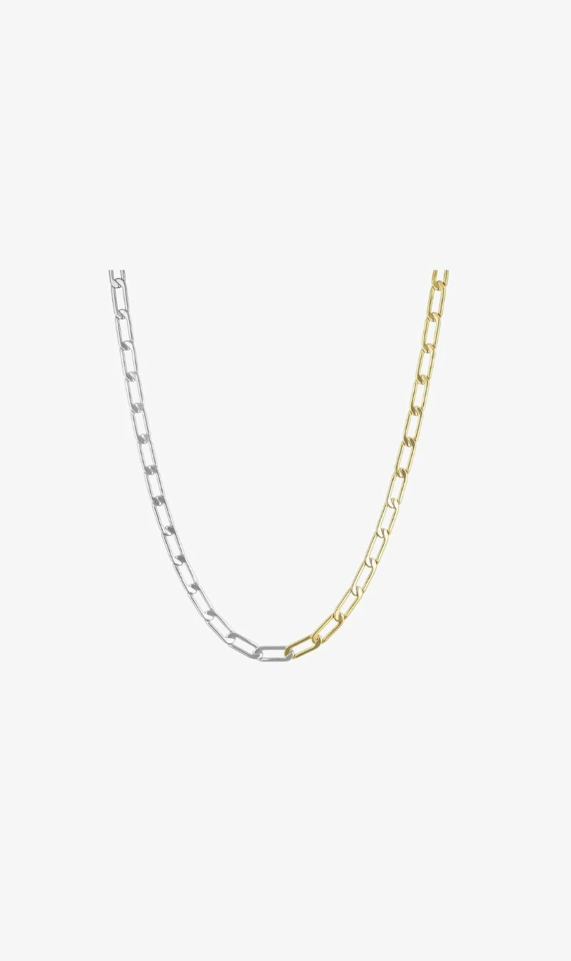 The Dhahab Maia Two-Tone necklace is for those who can’t decide between Gold and Silver…so why not have both? Mixing tones on the same base metal. Bold and refined.