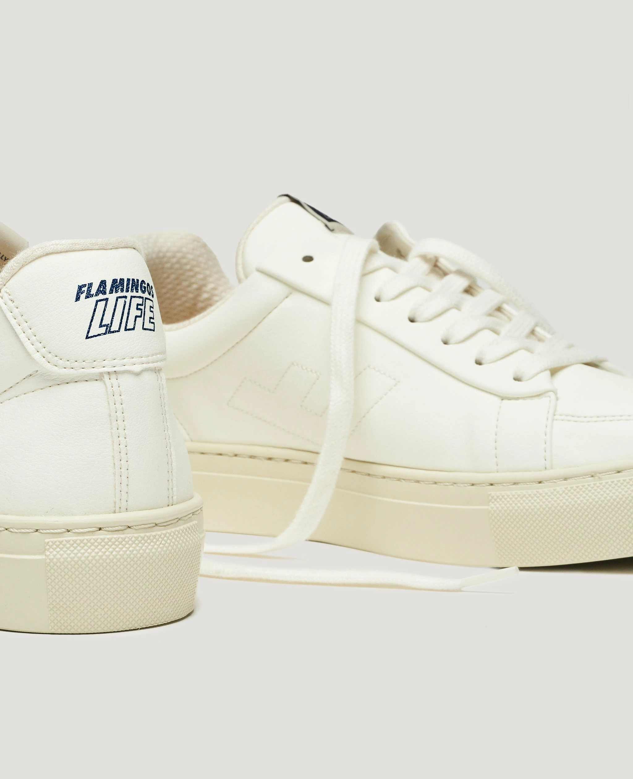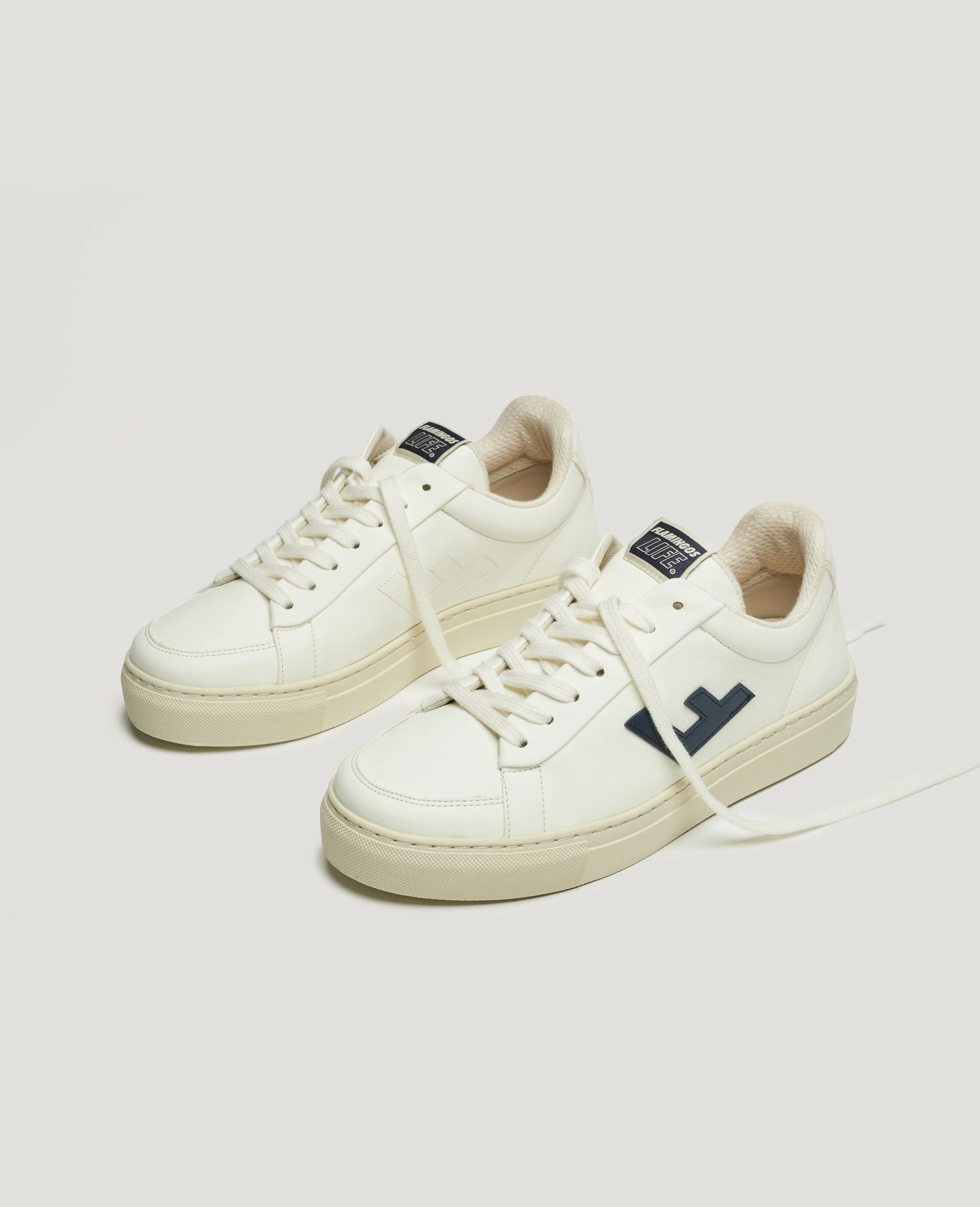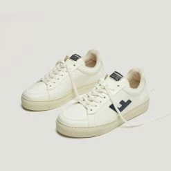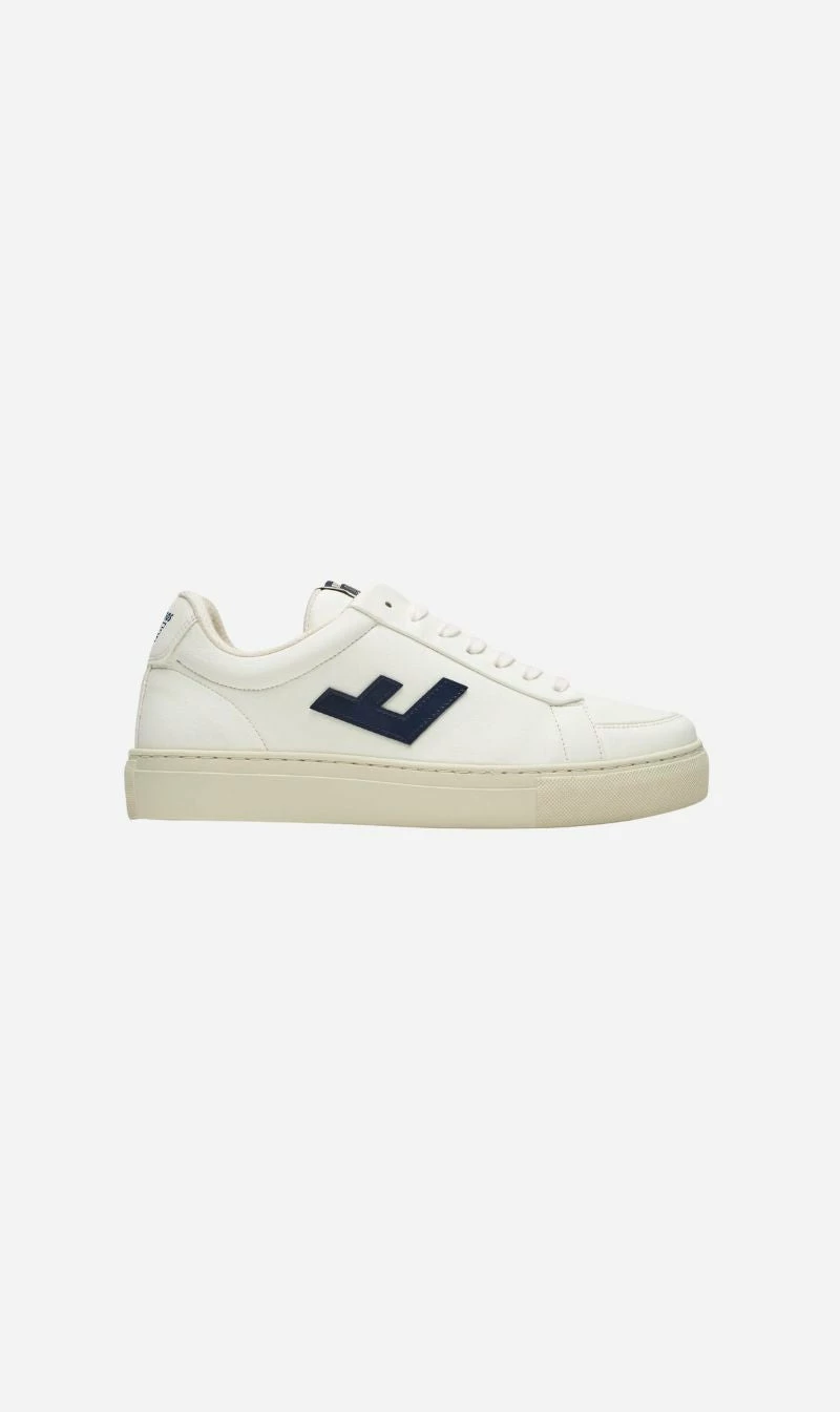 The Classic 70s Sneaker in Off White / Navy by Flamingos Life are in an off white and navy colourway and crafted from 100% vegan materials. Style the Classic 70s Sneaker with a mini dress and a cross body bag this summer.