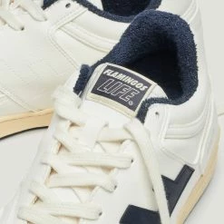 The Retro 90s Sneaker in Vanilla / Navy by Flamingos Life are in a vanilla and navy colourway and crafted from 100% vegan materials. Style the Retro 90 Sneaker with denim jeans and a white shirt.