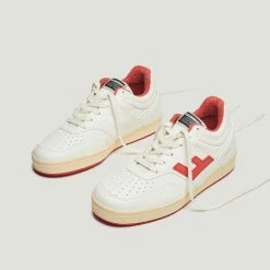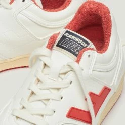 The Retro 90s Sneaker in Vanilla / Tomato by Flamingos Life are in a vanilla and tomato red colourway and crafted from 100% vegan materials. Style the Retro 90 Sneaker with denim jeans and a white shirt.