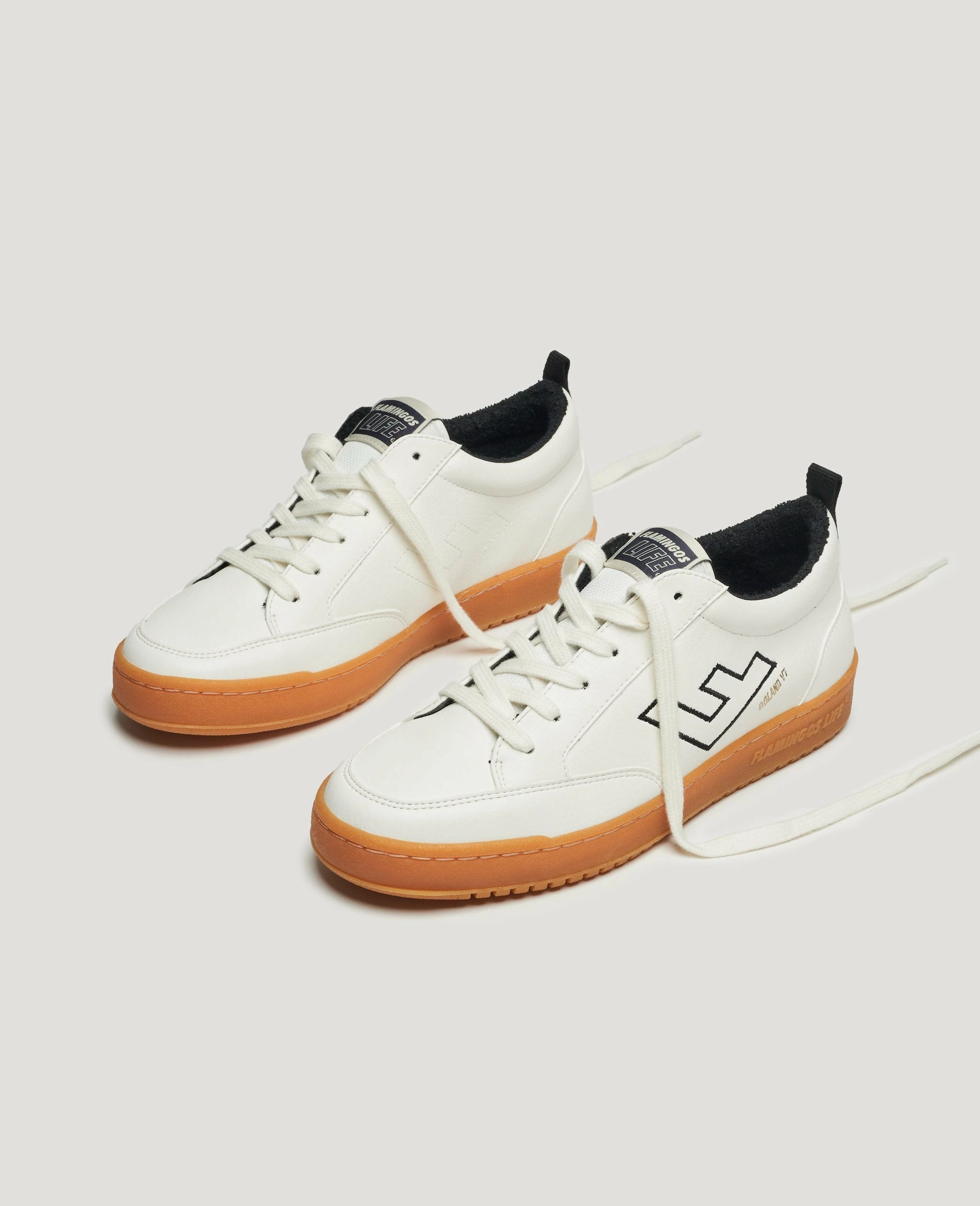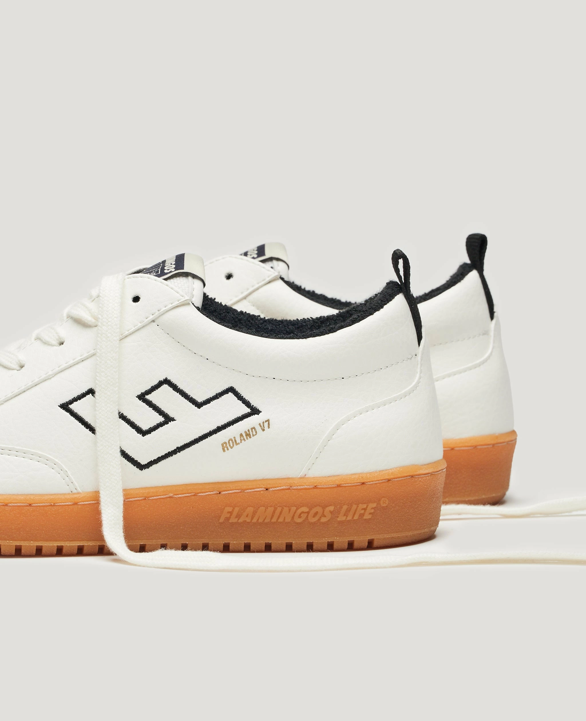 The Flamingo Life Roland V.7 Sneakers in White / Black / Caramel are 100% vegan, featuring a white base, black detailing, and a caramel-coloured rubber sole. Style the Roland V.7 Sneaker with denim shorts and a tee.