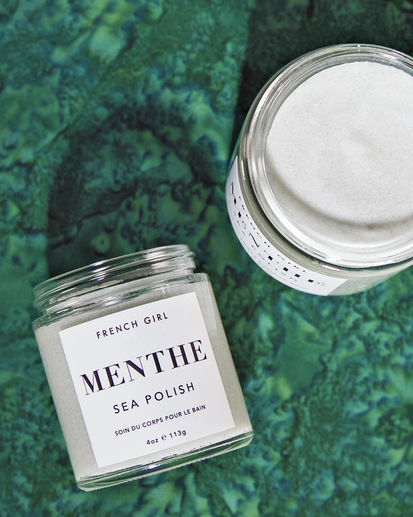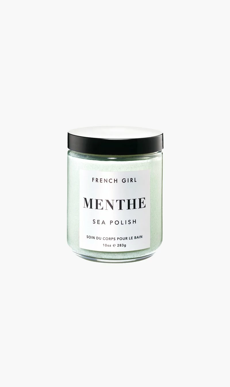The French Girl Menthe Sea Polish is an invigorating body scrub composed of Atlantic sea salts, nourishing butters, and fruit oils that work to gently exfoliate, detoxify, and moisturize the skin.