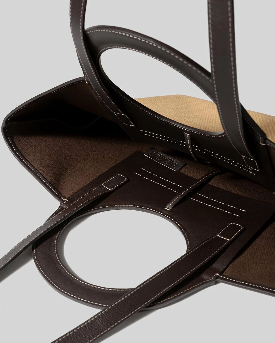 The Cala Small Tote bag from Spanish brand Hereu is constructed from premium heavy canvas with leather handles and trimmed and lined with natural cotton canvas. Made in Spain, by local artisans using local materials, celebrating excellence and tradition in craftsmanship.