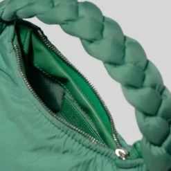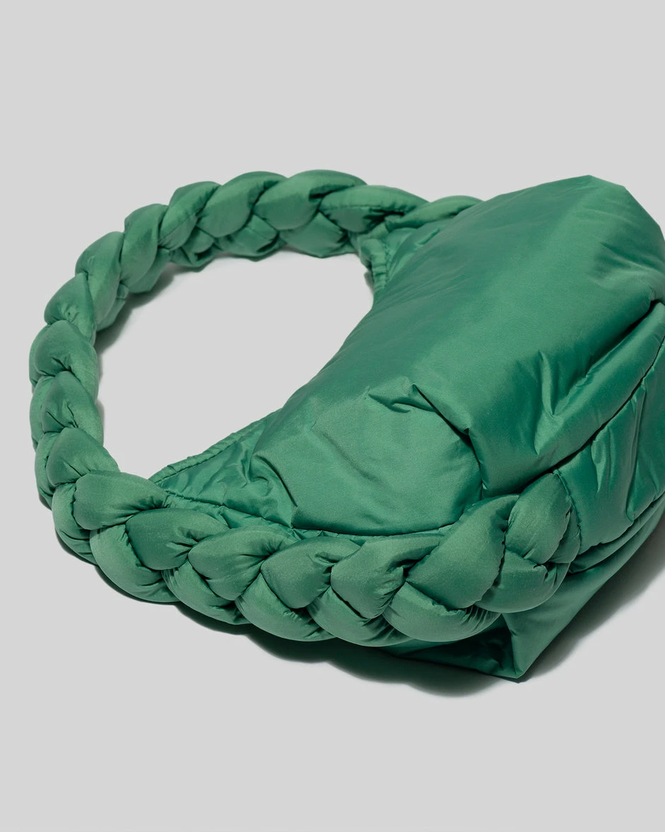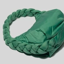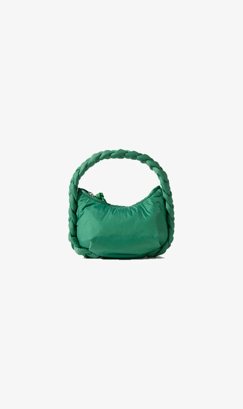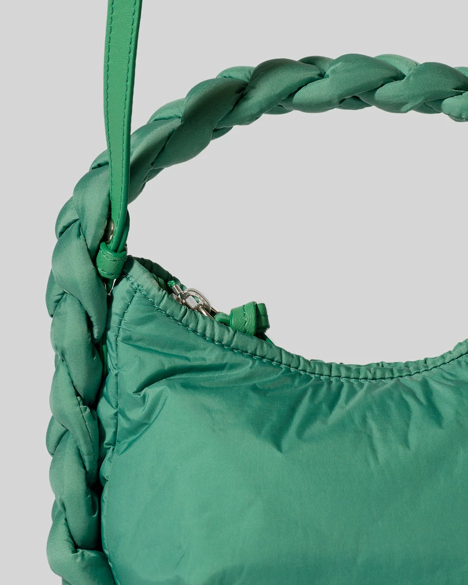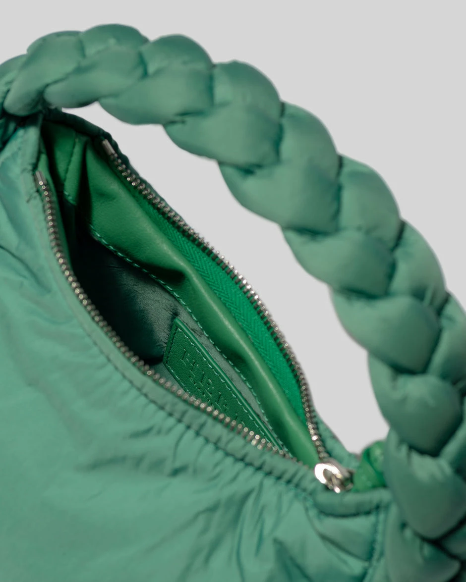 The Hereu Espiga Mini Plaited Crossbody Bag in Mint. A Mini crossbody with braided detail made in nylon with lambskin trims. Matching nylon lining.