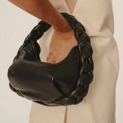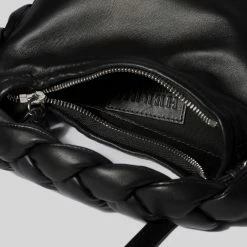 The Hereu Espiga Mini Plaited Crossbody Bag in Black. An ultra-soft crossbody bag with plaited padded detail, crafted in supple lambskin and lined with organic cotton canvas.