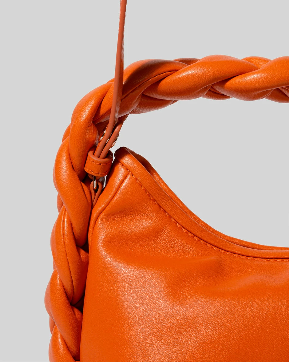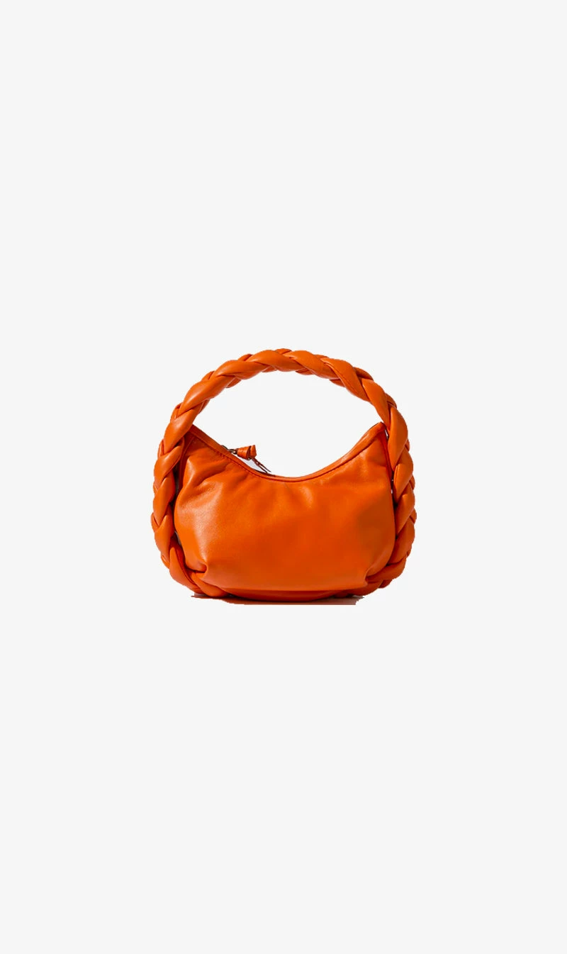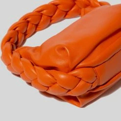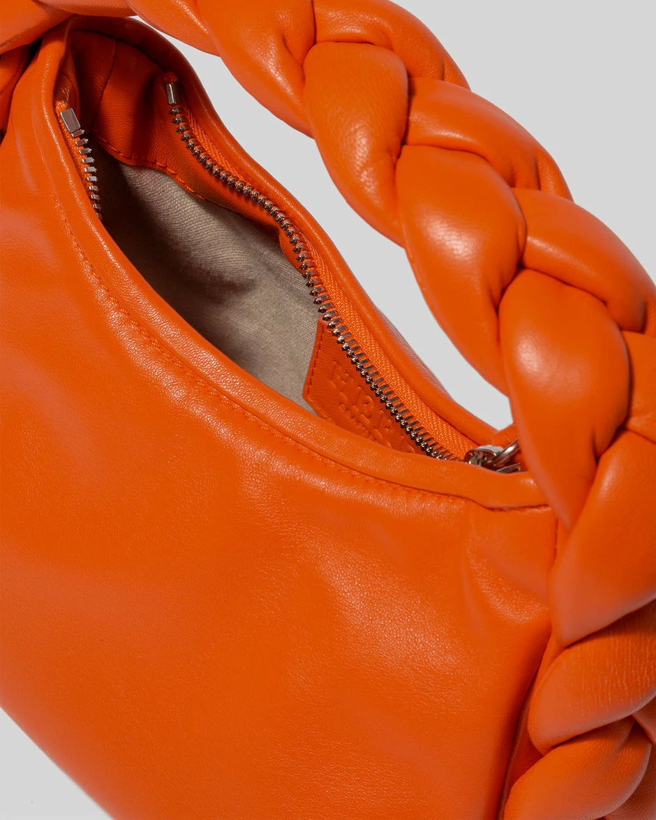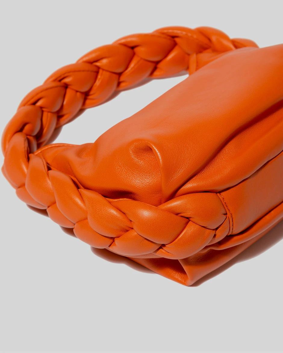 The Hereu Espiga Mini Plaited Crossbody Bag in Orange. An ultra-soft crossbody bag with plaited padded detail, crafted in supple lambskin and lined with organic cotton canvas.Â