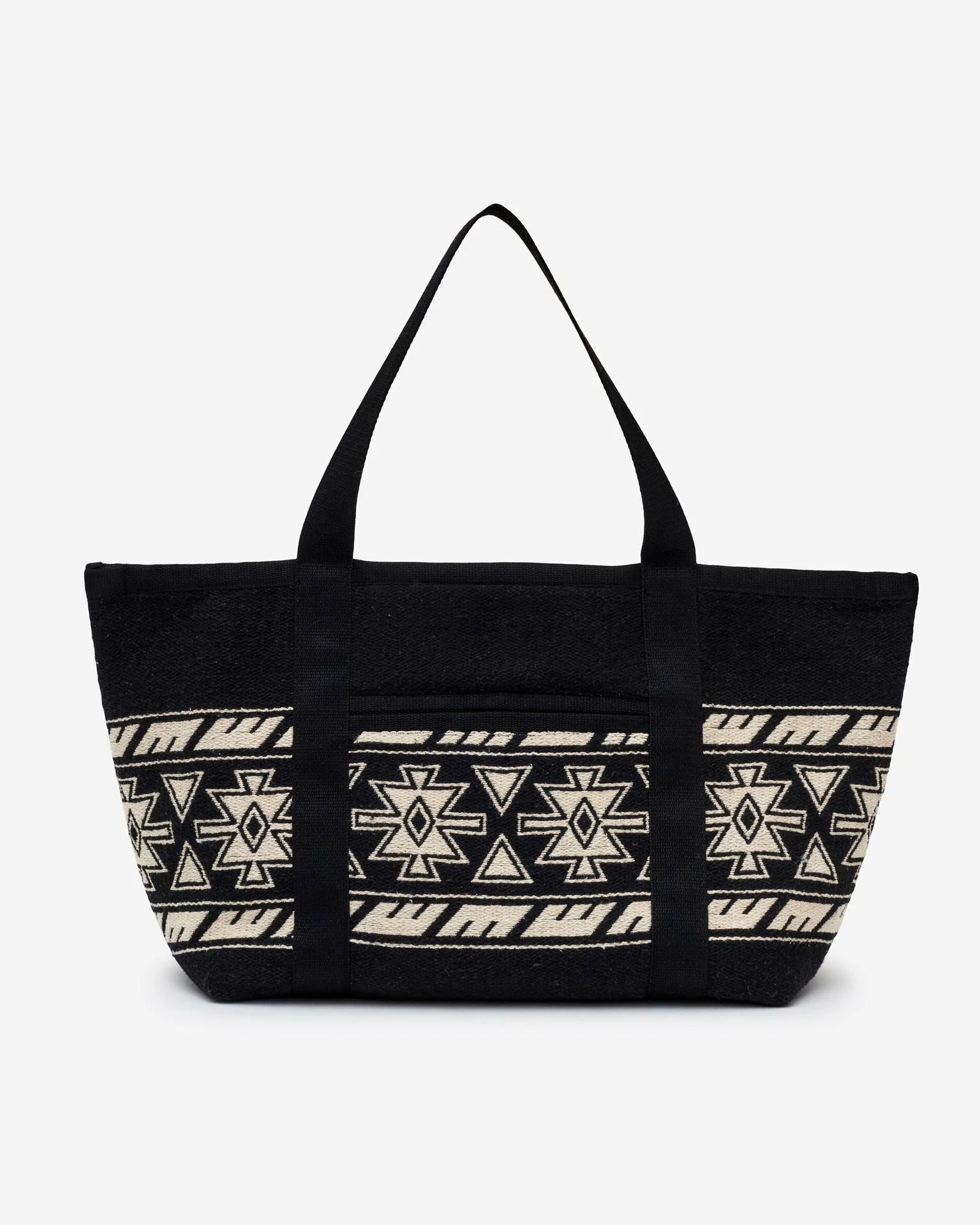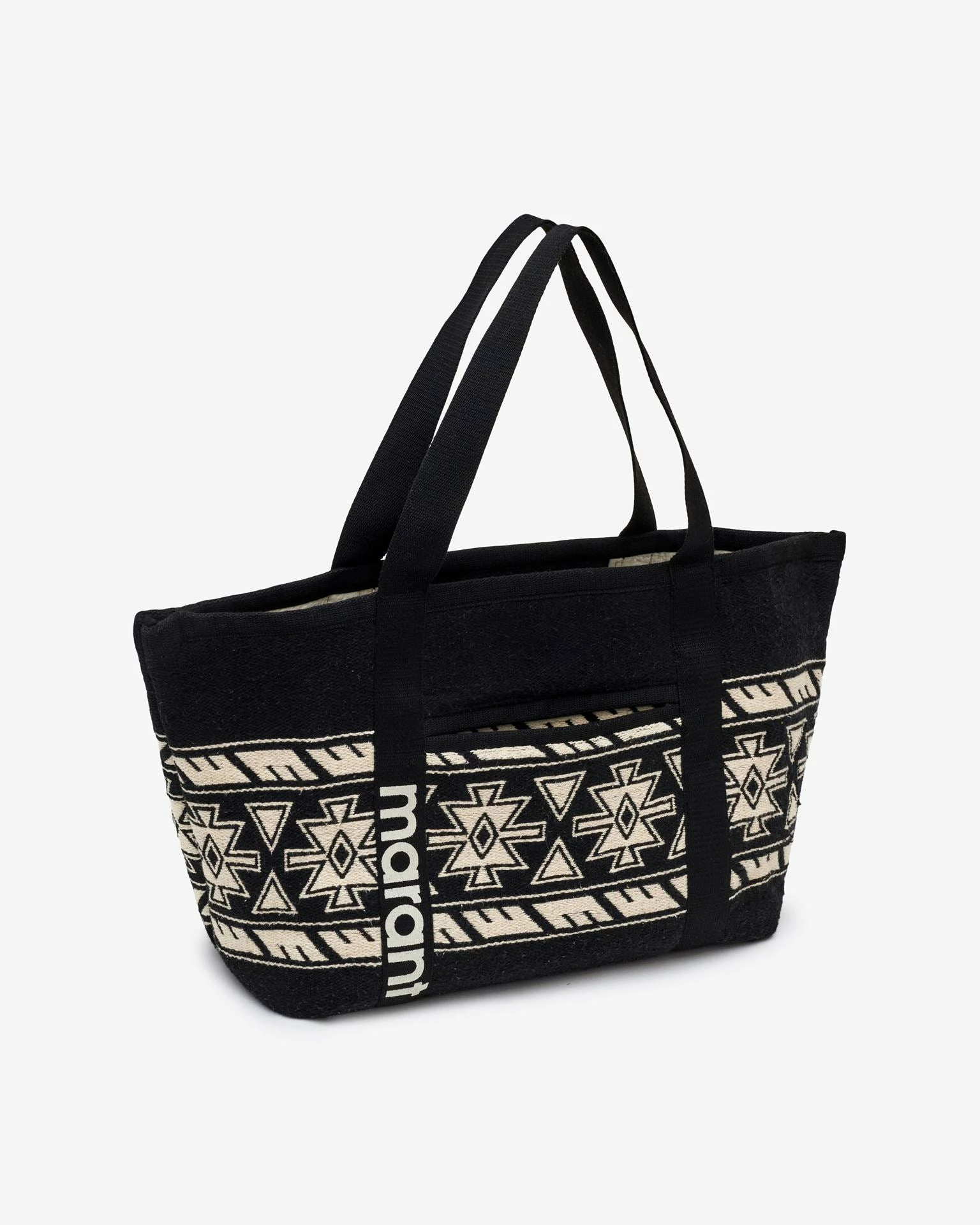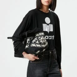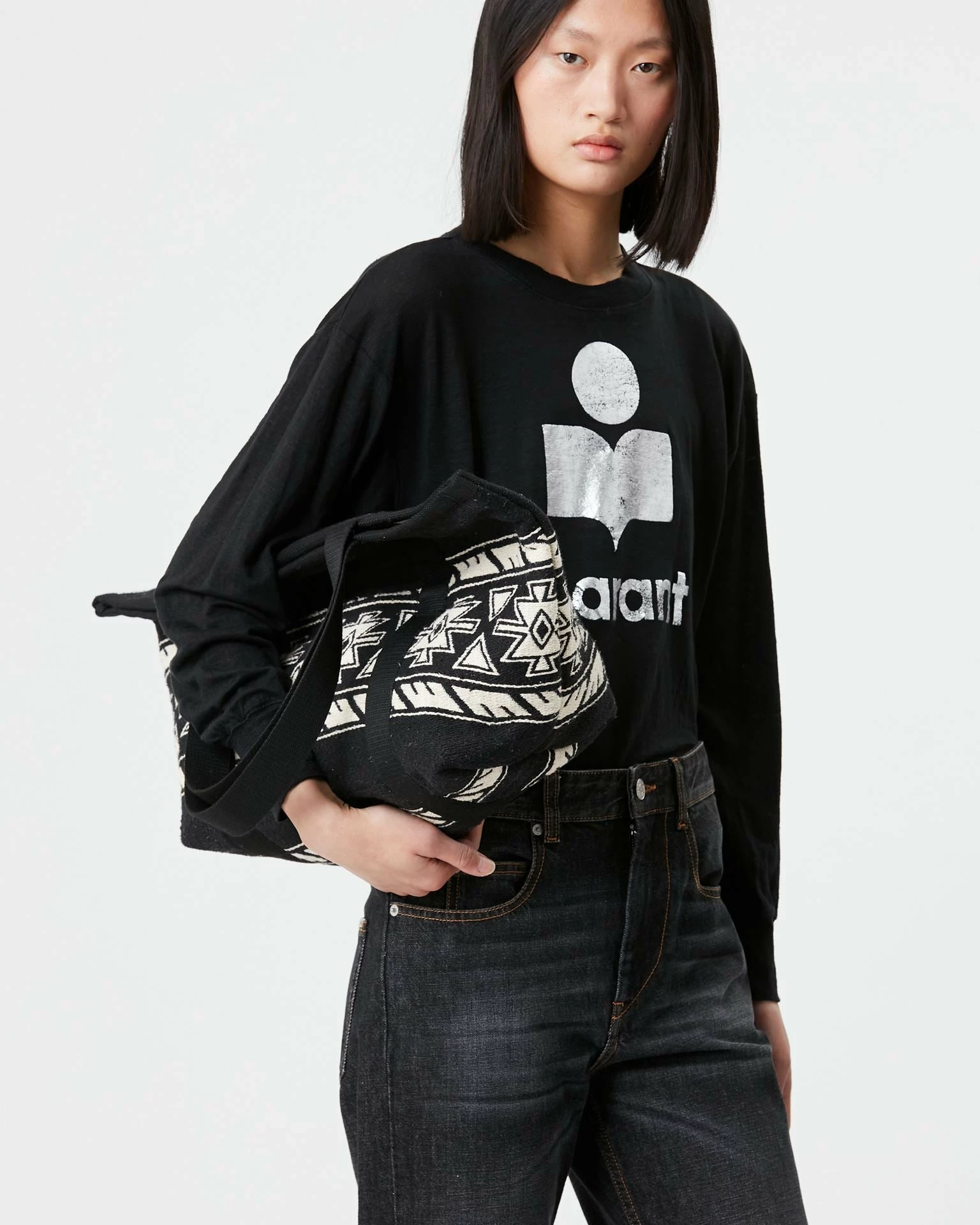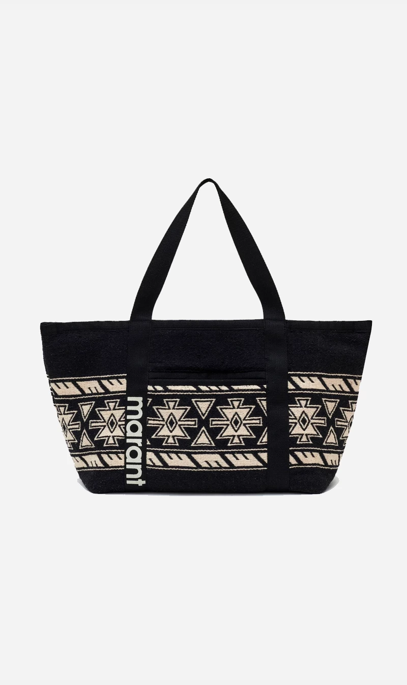 A fabulous update on the signature Marant tote, the Isabel Marant Darwen Shoulder Bag in Black/Ecru features graphic jacquard on the side and a large Marant logo. Practical for the every day, the Darwen can be carry-on as well.Â