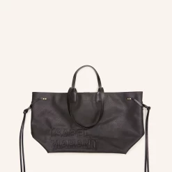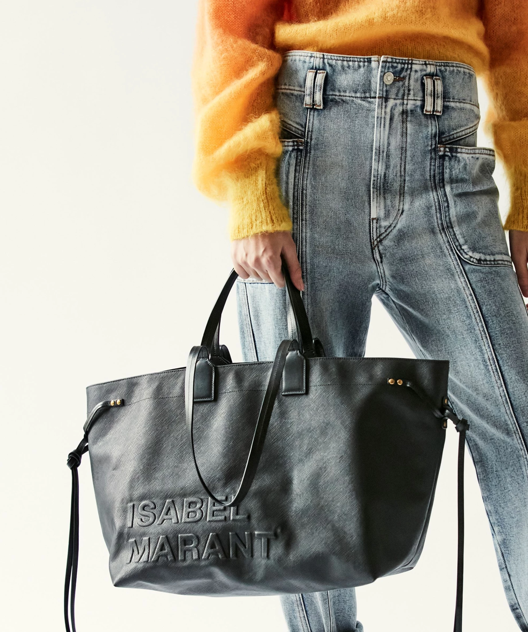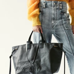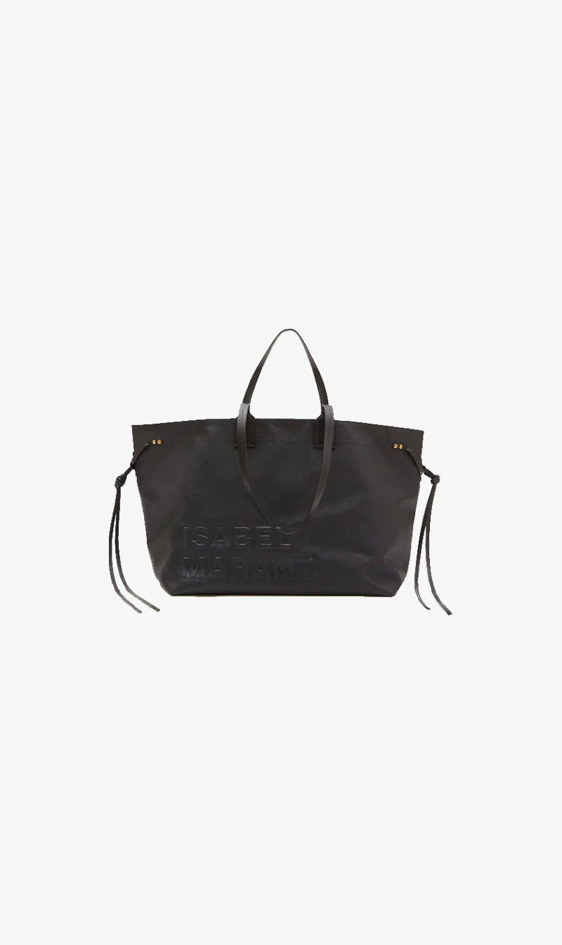 The Isabel Marant Wydra Shoulder Bag in Black. A Shopping style bag in coated canvas featuring Four handles and a Magnetic fastening.