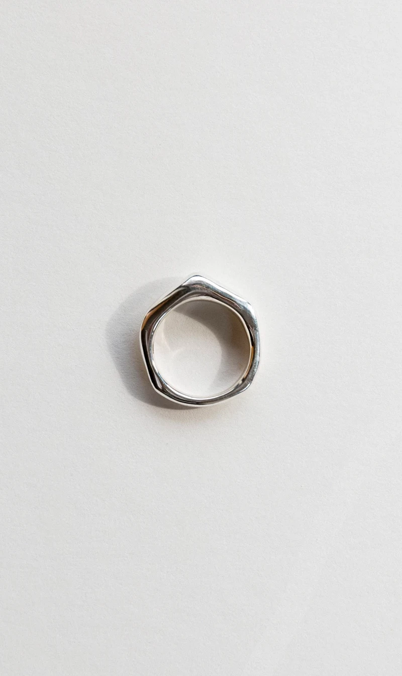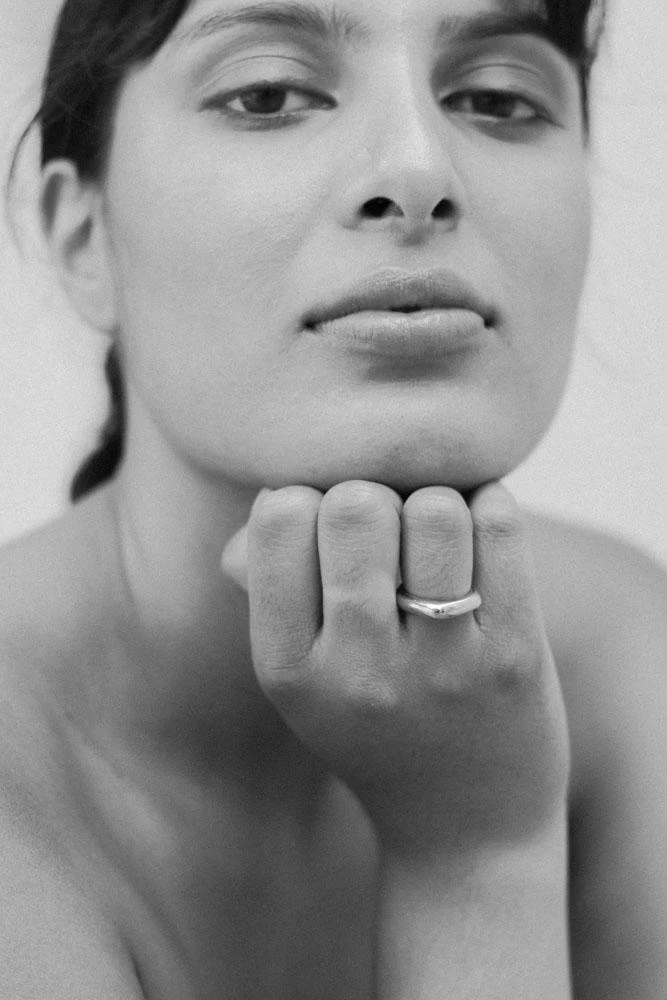 The Jasmin Sparrow Blue Ring in Silver. An organically formed ring, softly moulded to mimic and accentuate the natural curve and flow of the hand. Can be worn alone, or stracked
