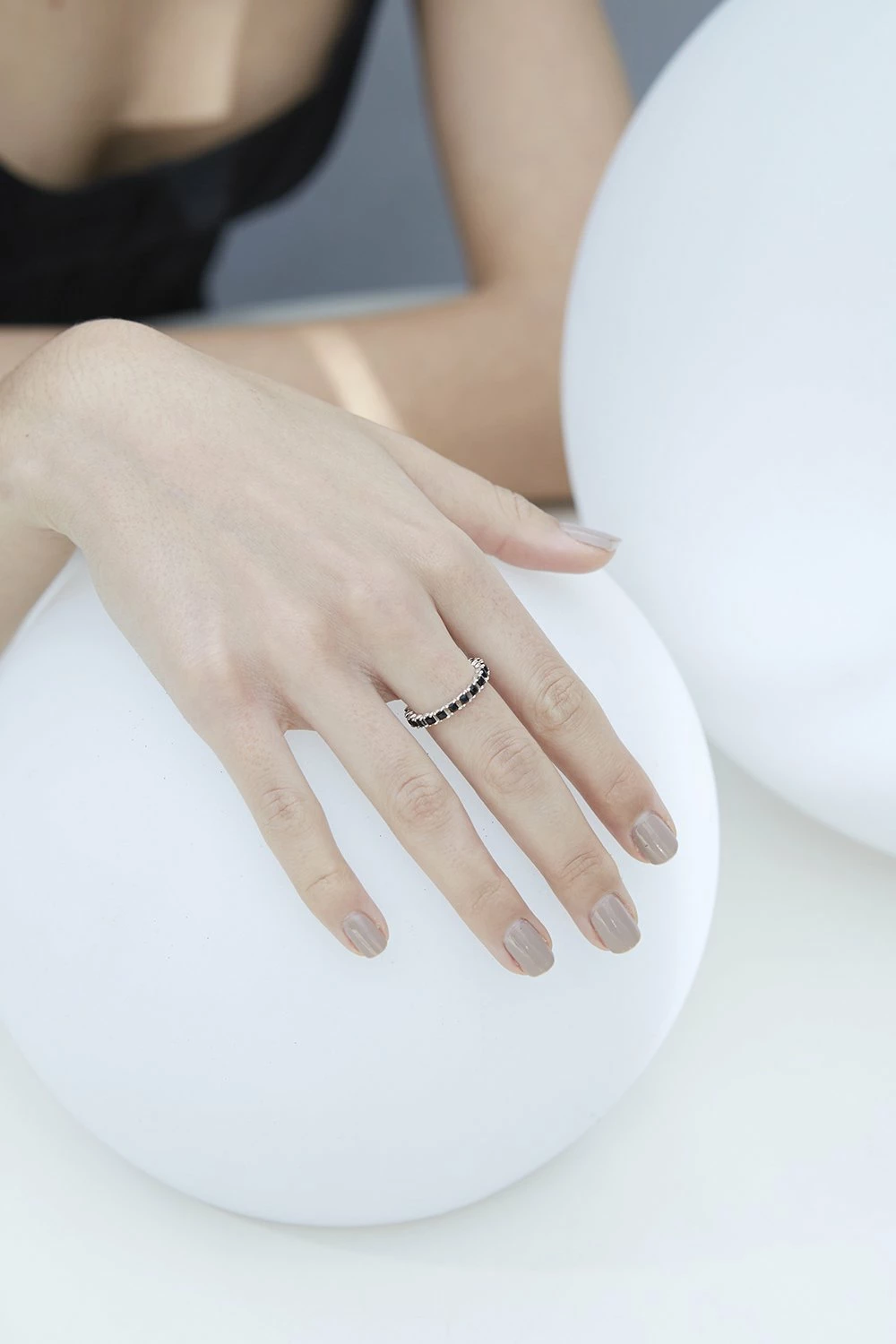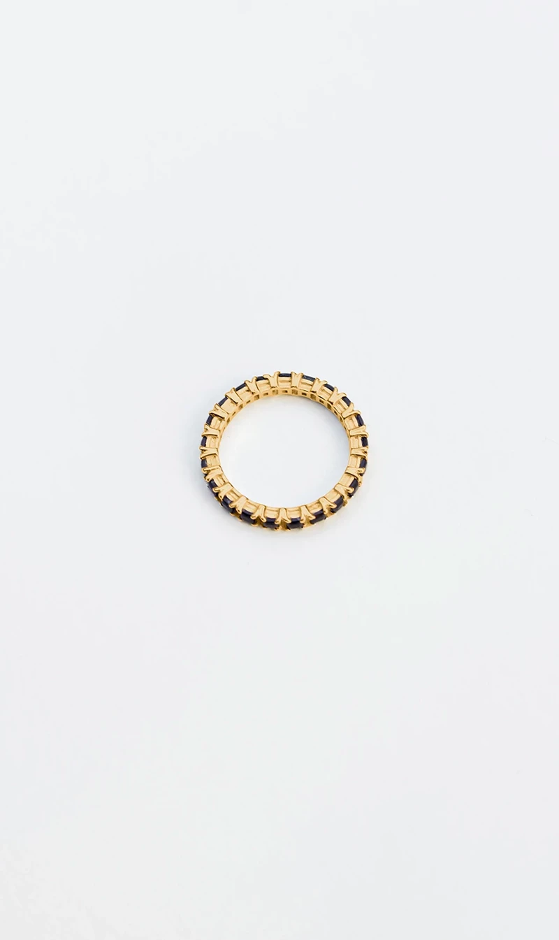 The Jasmin Sparrow Wave ring in Gold Black Onyx elegantly encases the finger in a delicate row of box-set black onyx — a stone regarded for its protective and cleansing qualities. Wear alone, or artfully stacked.
