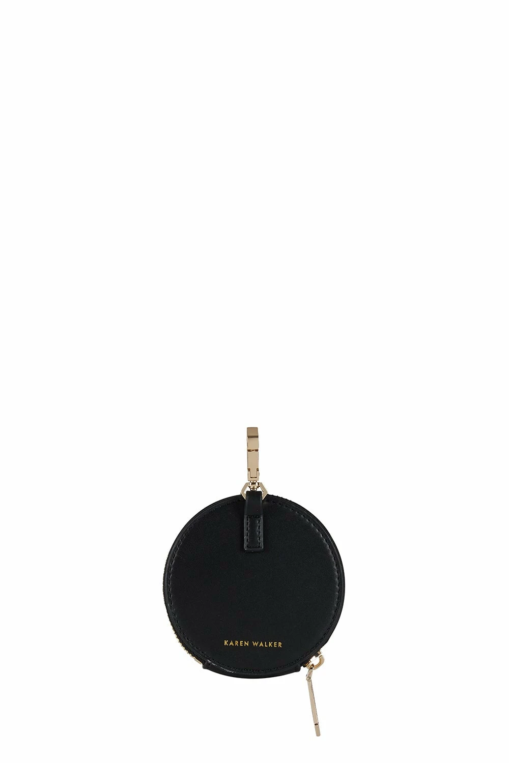 Utility meets whimsy with the Karen Walker Filigree Coin Purse, a charming accessory that is adorned with our KW Filigree pattern debossed on the front. Crafted from a soft, vegan leatherette, it has a zip closure and clip that can be attached to your favourite bag or used as a handy keyring. It features gold-tone hardware and a custom arrow zipper.