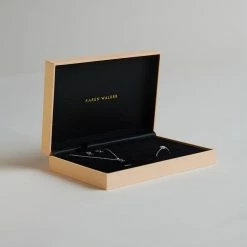 This gift set includes the Mini Star Necklace, Mini Star Ring and Mini Star Studs presented in a special edition Karen Walker jewellery box. The peach toned jewellery box is decorated with Karen Walker’s iconic gold foil filigree design, and with its the satin and velvet lining can store up to six rings, six pairs of earrings and a necklace.