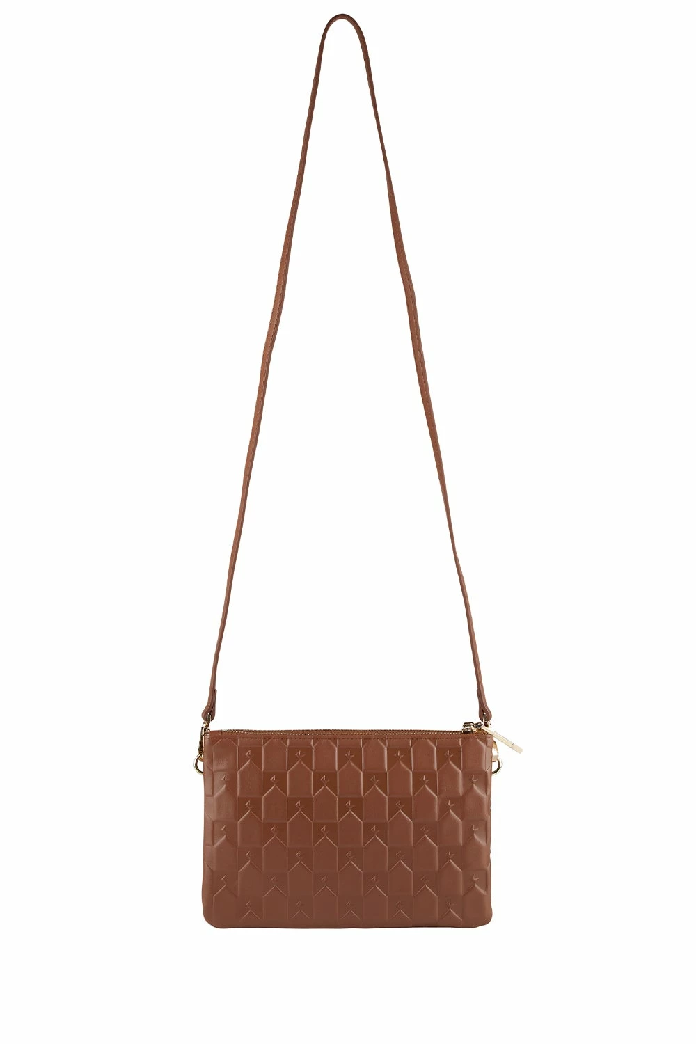 Twice as nice, the Monogram Double Zip Pouch is the Karen Walker take on a clutch with a removable strap and has been crafted in buttery soft nappa leather that is embossed with the signature Karen Walker monogram in a subtle all-over design. The double design features two individual zip pouches that are fully lined with smooth printed lining and completed with gold-tone metal hardware and signature KW arrow zippers. The matching nappa leather strap is the ideal length to wear across the body or throw elegantly over the shoulder and can be unclipped, too.