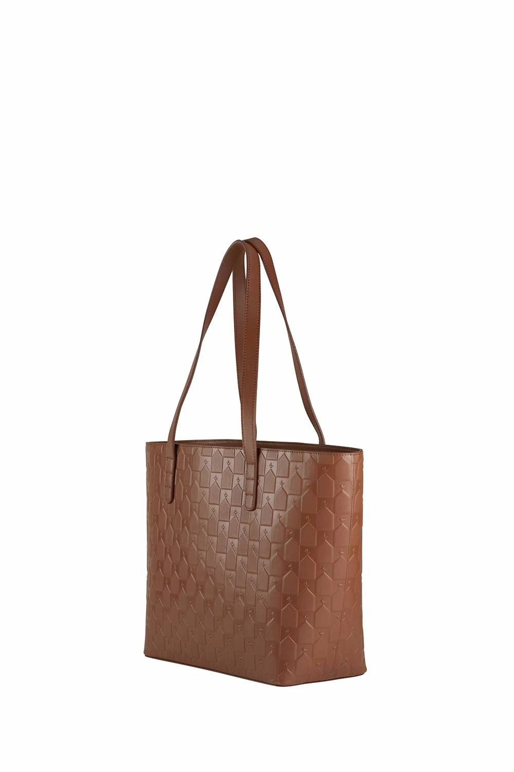 Perfectly sized for daily use, the Monogram Tote by Karen Walker has been crafted in buttery soft nappa leather that is embossed with the signature Karen Walker monogram in a subtle all-over design. Fully lined with a smooth printed lining this ample-sized tote features handy internal pockets and gold-tone metal hardware including an internal clip closure for security. The matching nappa leather straps are an ideal length for carrying or sitting elegantly on the shoulder.