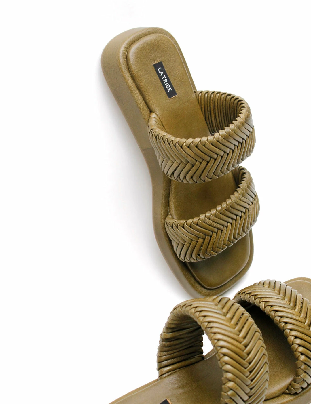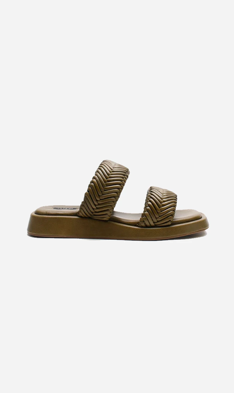 The Double Strap Braided Slide from La Tribe features exaggerated straps for a modern addition to the summer wardrobe. Finished with fishtail braided detail and a contrast suede sole edge. These slides will be a summer wardrobe staple, dress them up and down, no matter what the occasion.